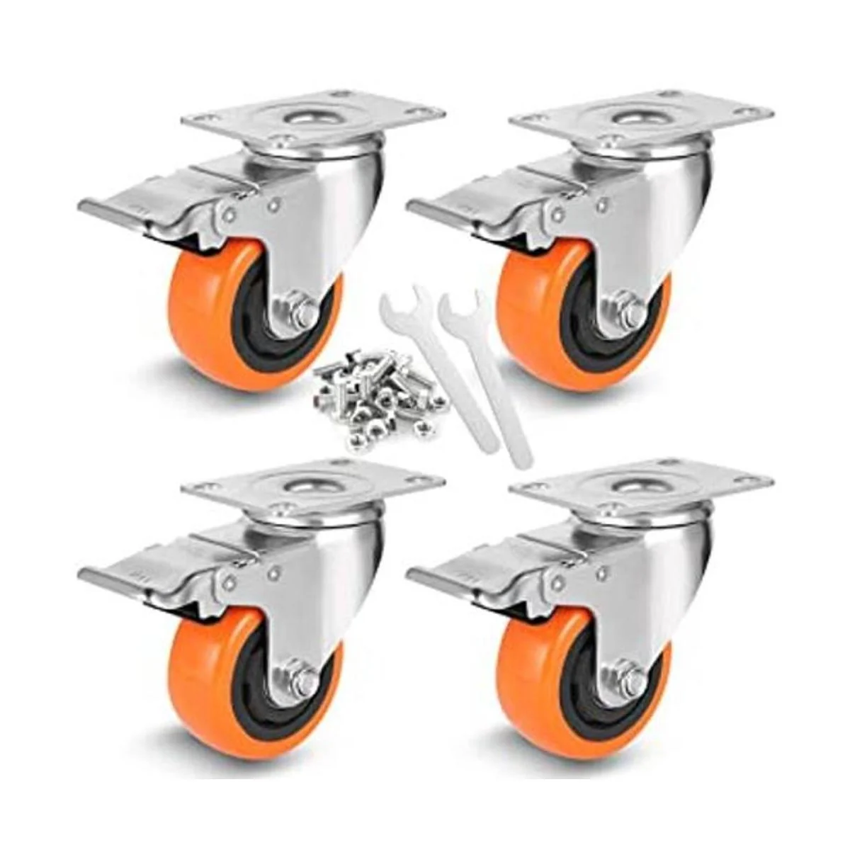 WBD WEIBIDA Ruedas giratorias de 3 pulgadas con freno, ruedas de bloqueo doble de seguridad, juego de 4 ruedas resistentes de 1000 libras, ruedas de poliuretano de alta calidad para muebles y banco de trabajo tornillos y llave gratis