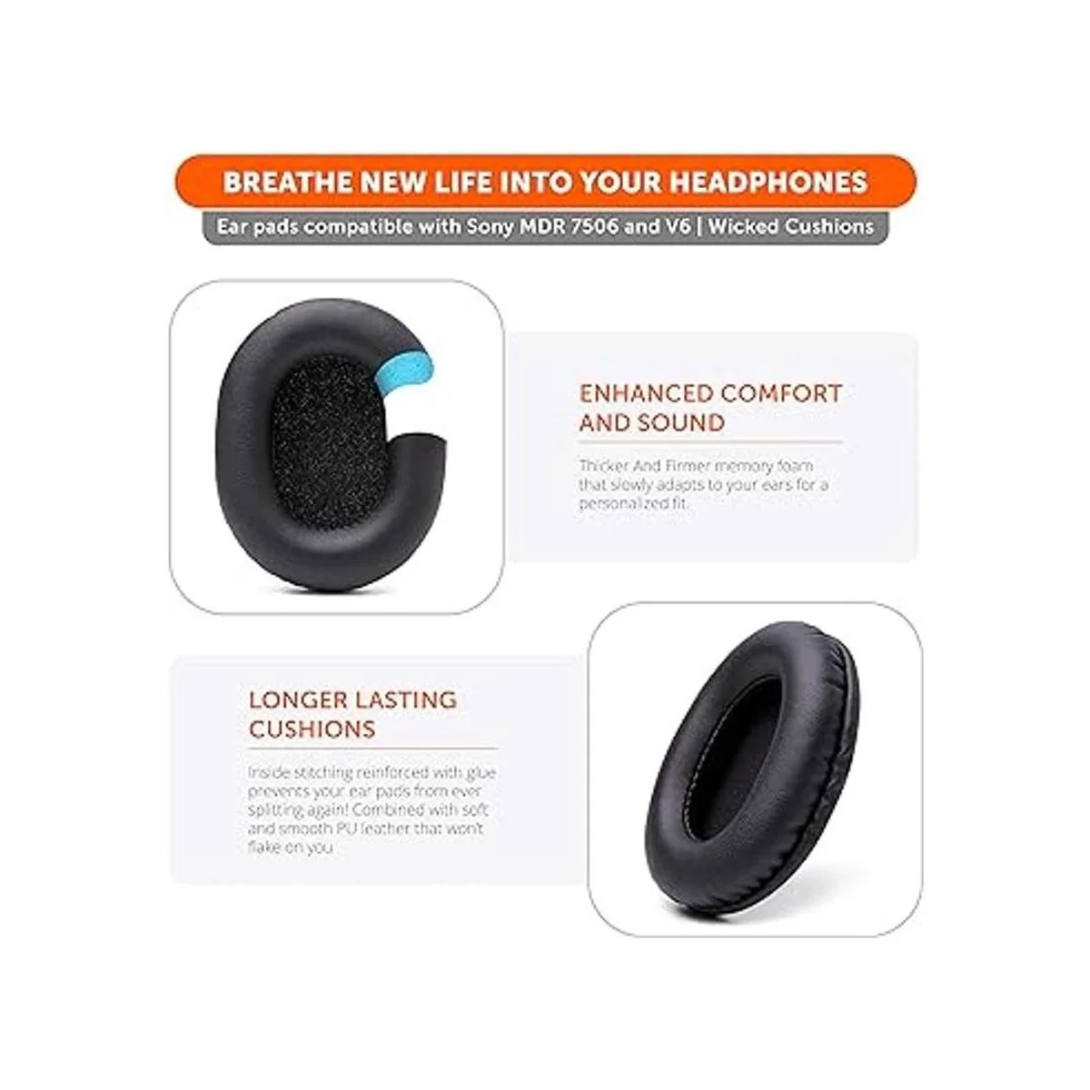 WC Wicked Cushions, almohadillas de repuesto para Sony MDR 7506, cuero más suave, espuma viscoelástica lujosa, durabilidad inigualable, compatible con MDR 7506, MDR V6, MDR CD900ST negro
