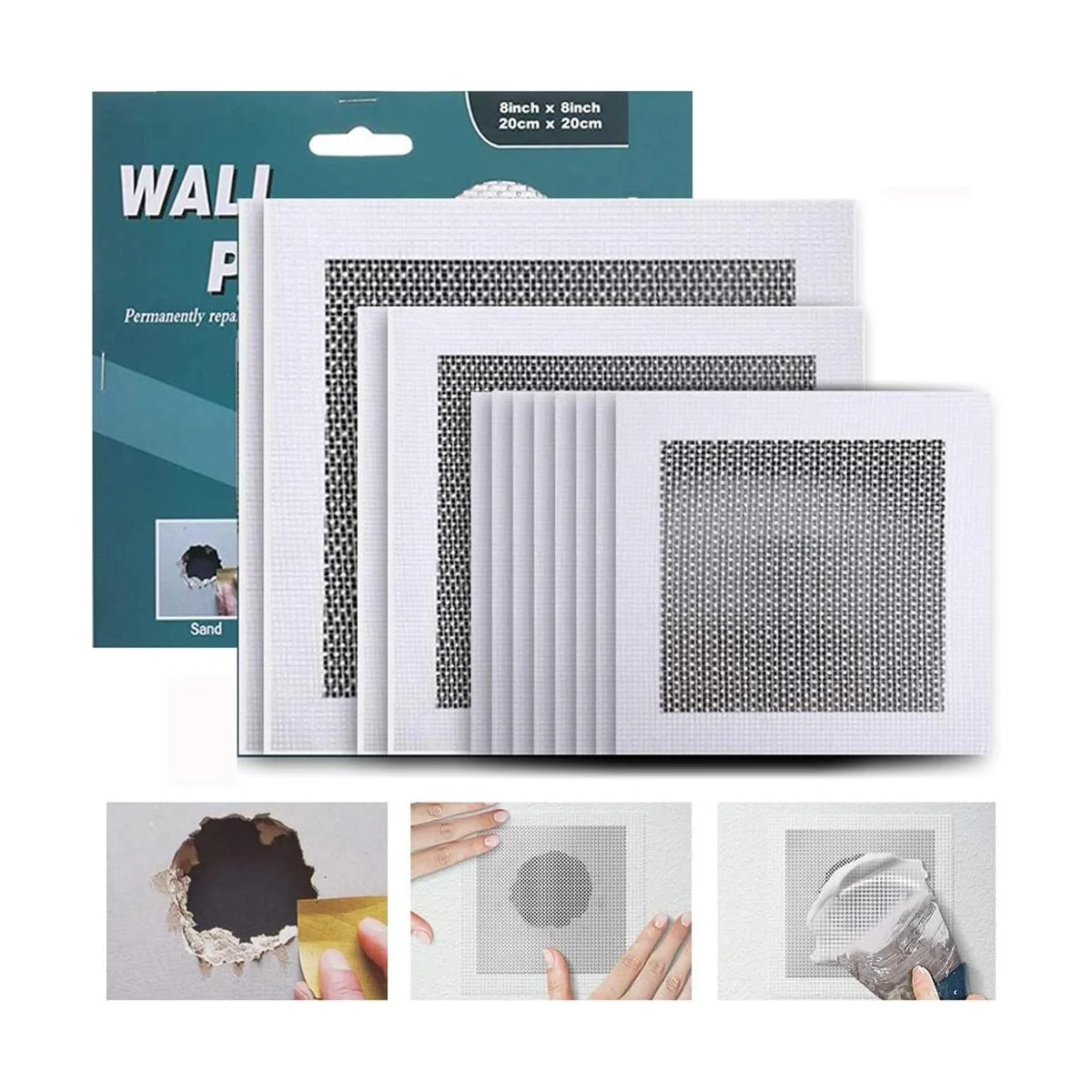 WDSHCR Kit de reparación de paneles de yeso, 12 piezas de aluminio para reparación de pared, malla de fibra de 468 pulgadas sobre placa galvanizada, parche de reparación de agujeros de pared seca con malla autoadhesiva extendida 12 piezas