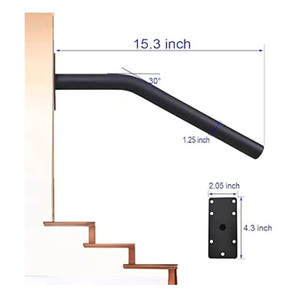 Tamaño: longitud de la barandilla: 15.4 in; el tubo es de 1.3 in de diámetro, arco del reposabrazos: 30, añade algunos accesorios seguros a escalones al aire libre y escaleras interiores.