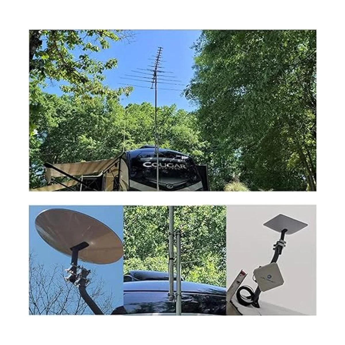 Ampliamente utilizado: esta abrazadera de montaje de mástil está diseñada para sostener la mayoría de WiFi, PC, celular, antenas de TV, CB, jamón, tubo, mástil de bandera, linternas, paraguas, cañas de pescar. Permite variar la longitud del tubo de montaje.