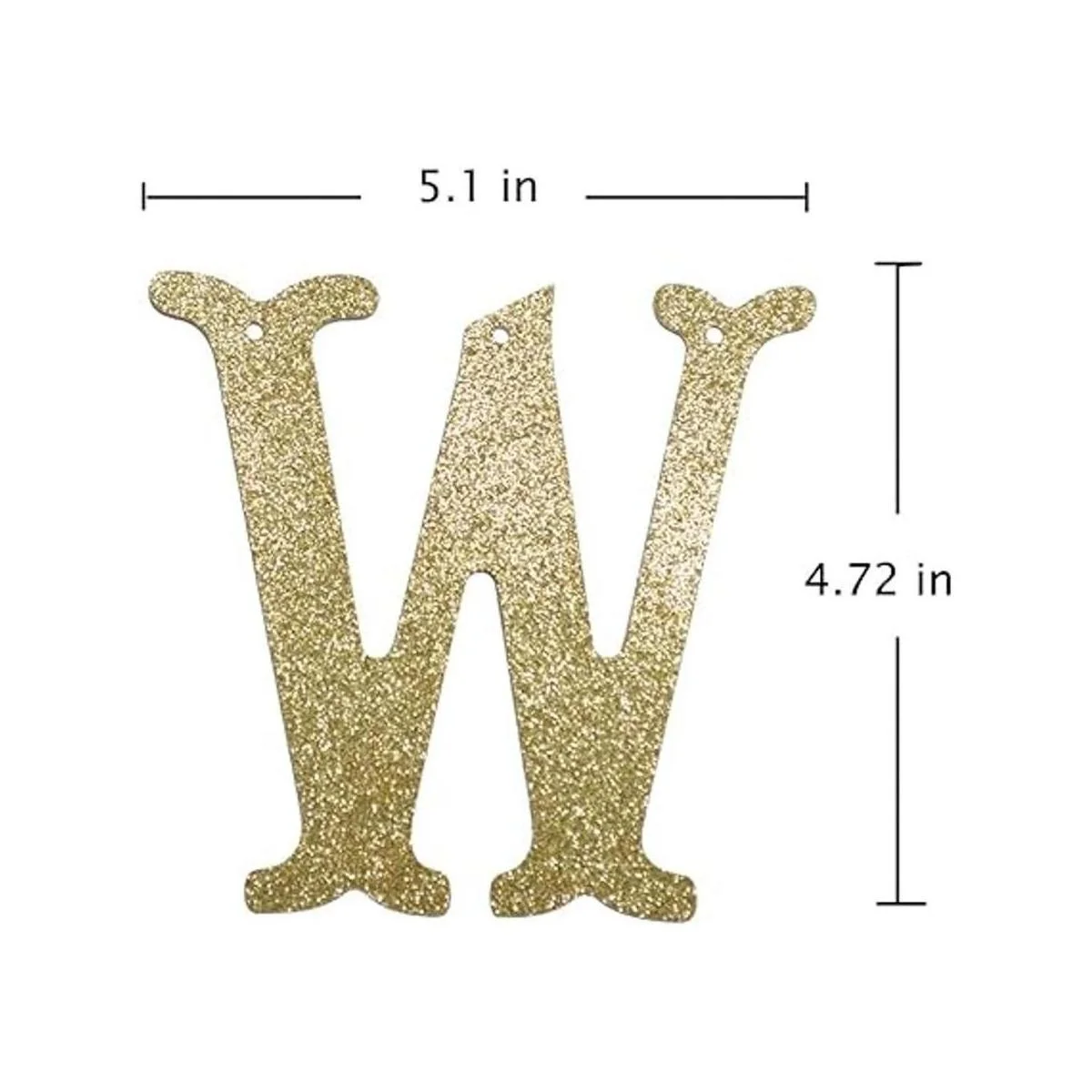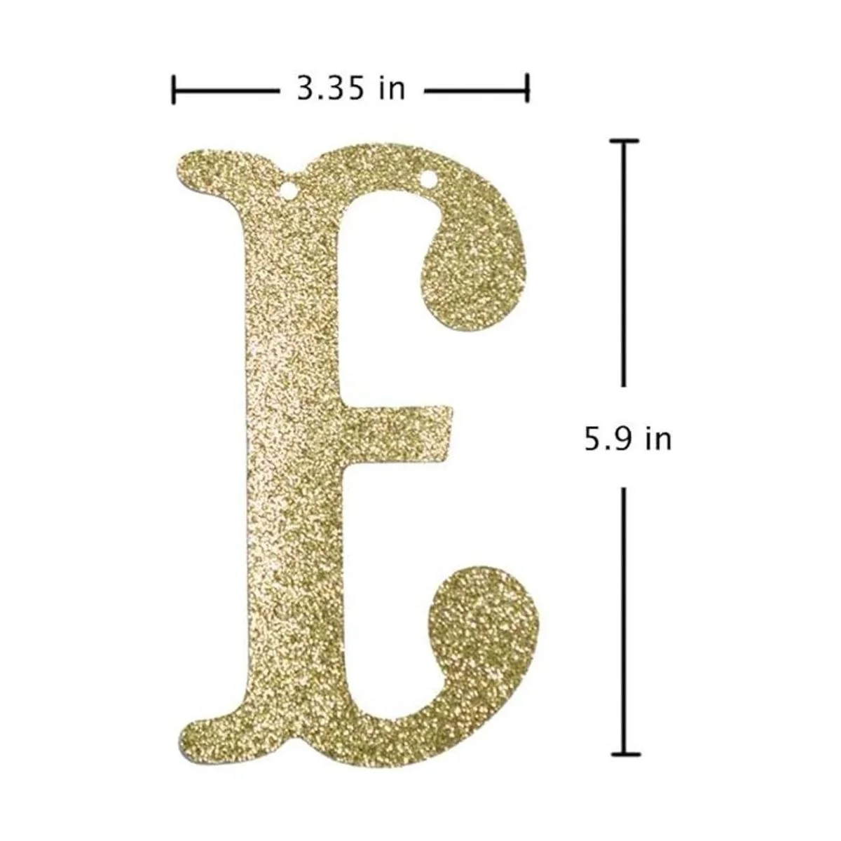 Incluye: 9 letras doradas con purpurina, 1 corazón, 1 anillo, 1 cinta dorada