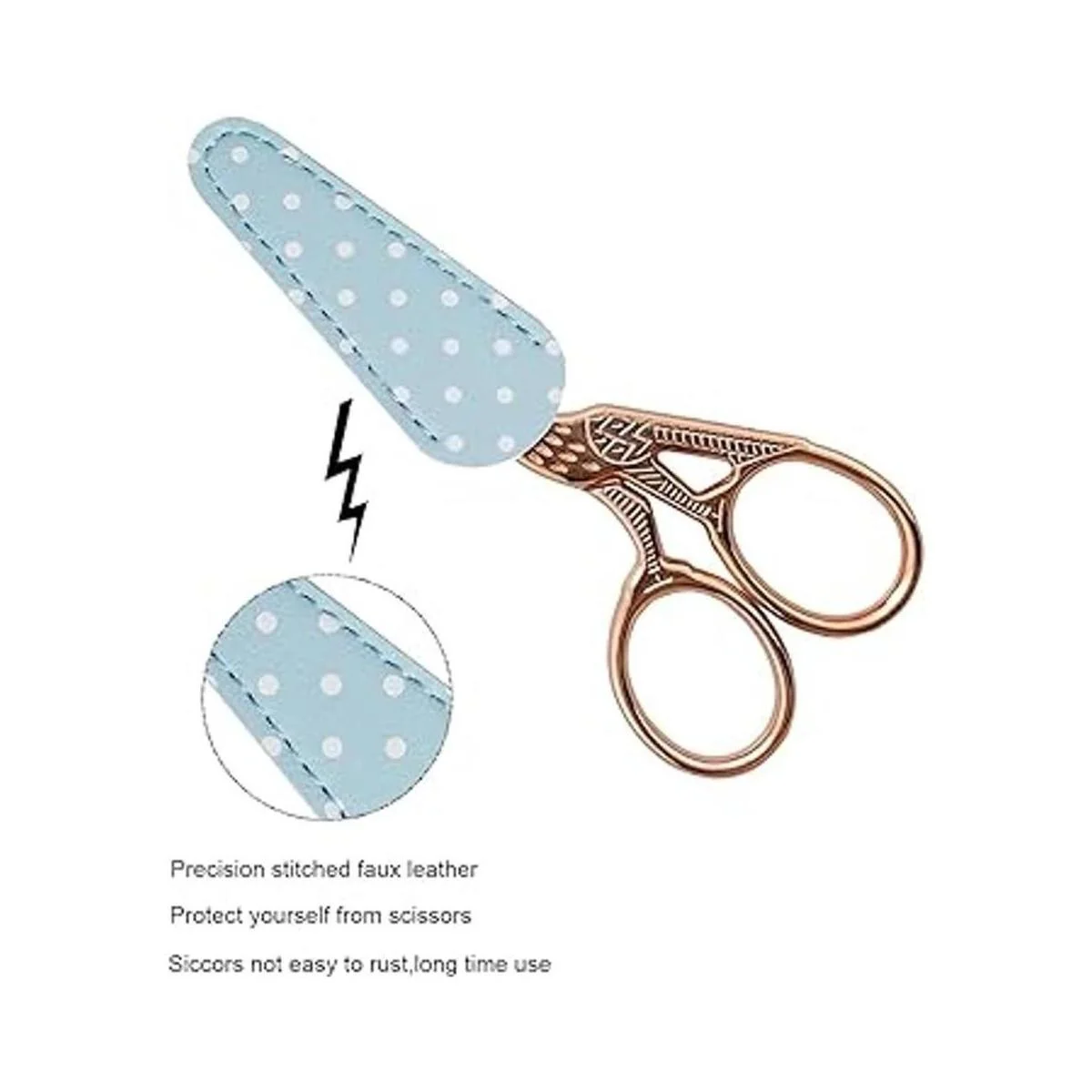 Prácticas fundas protectoras: estas fundas de cuero con patrón no solo se ven bonitas, sino que también evitan que las tijeras se expongan directamente al aire, las tijeras no se oxidan fácilmente, se pueden utilizar durante más tiempo y te protegen de ser apuñaladas por tijeras.