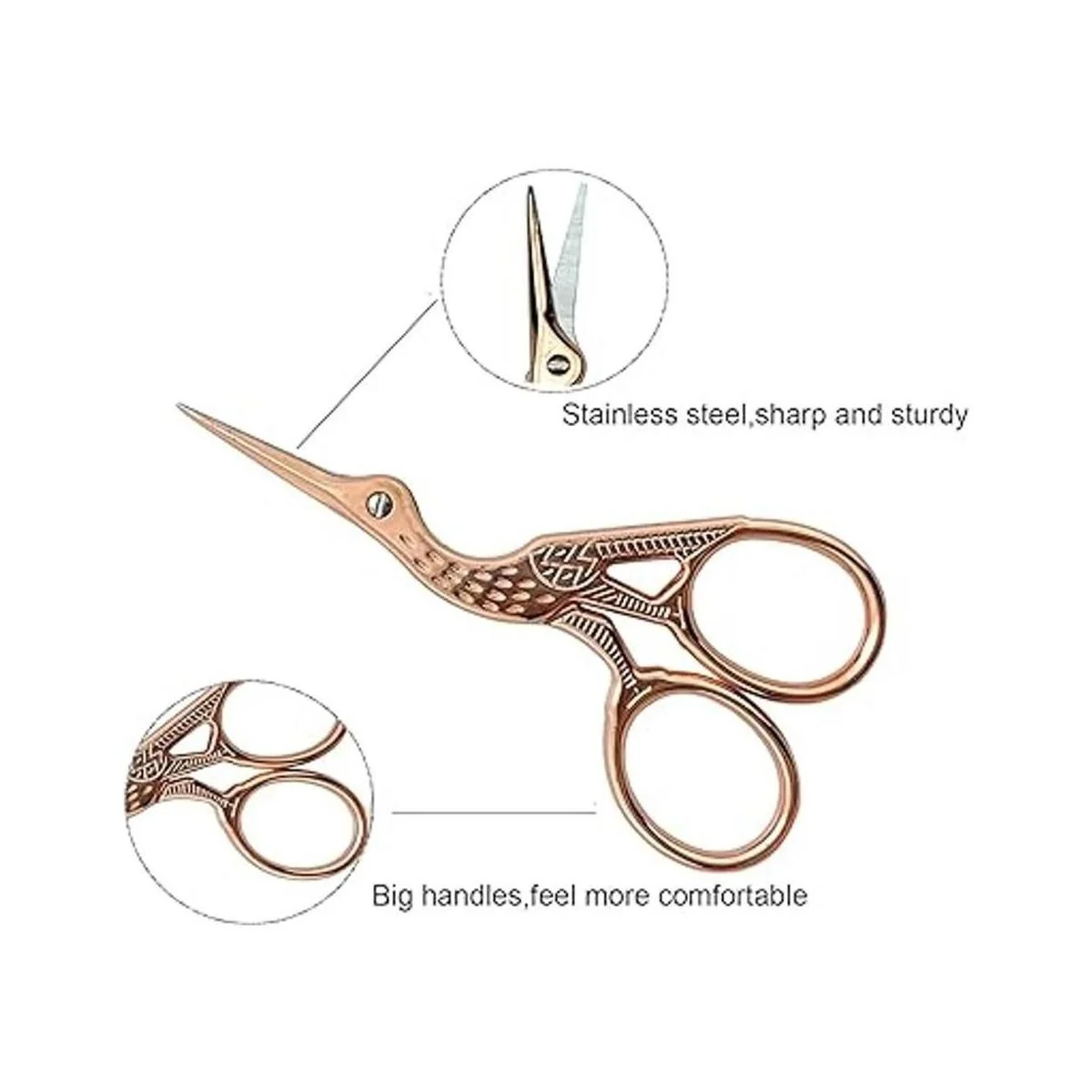 Amplias aplicaciones: estas tijeras de costura con forma de cigeña se pueden aplicar ampliamente para bordado, costura, fabricación, costura, oficina, corte de papel, manualidades, para cortar algunos productos pequeños o finos, etc. Satisface tus diversas necesidades de costura, aportando mucha comodidad.