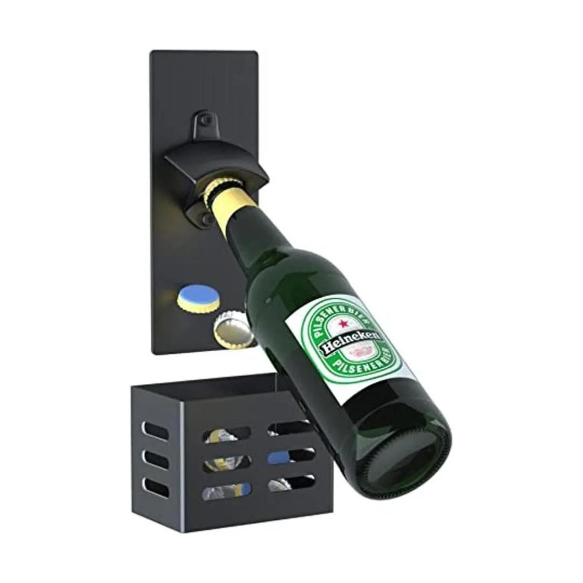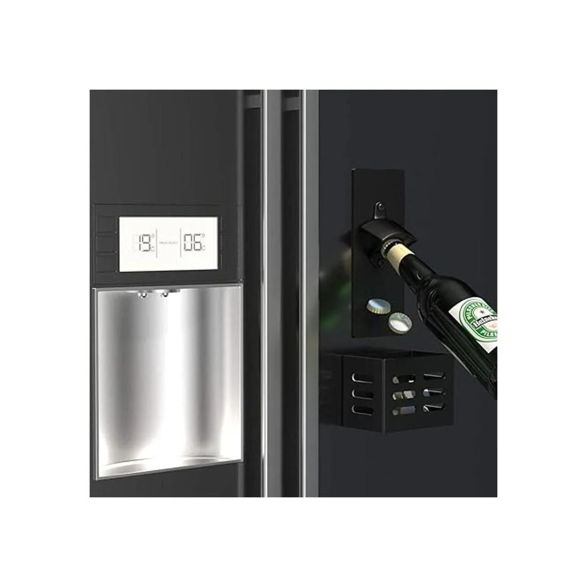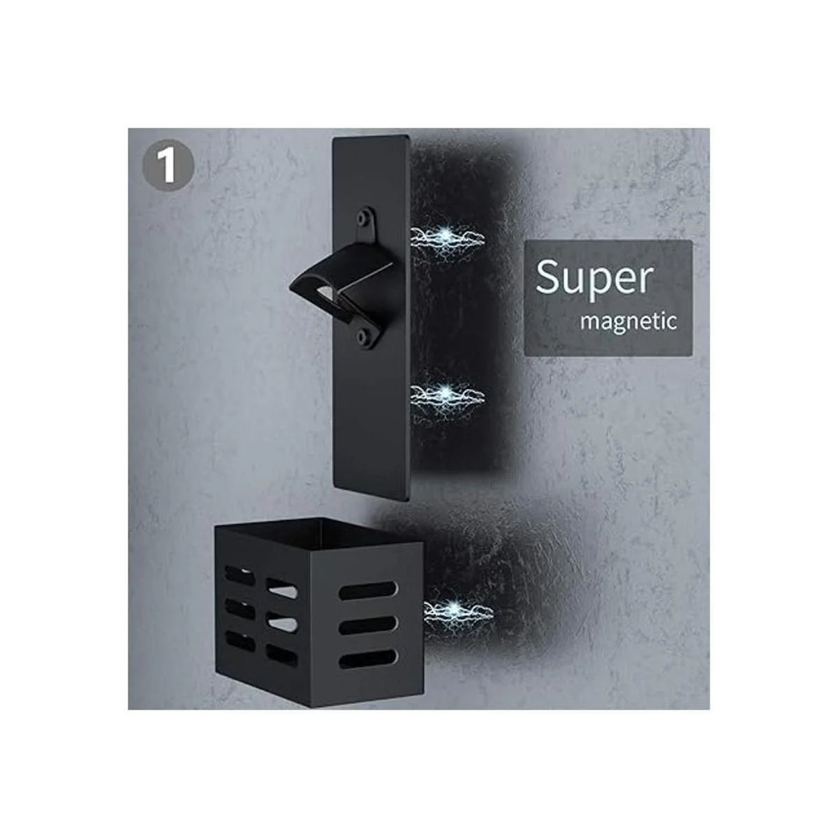 weallbuy Abridor de botellas magnético con tapa de recogida, abridor de botellas de cerveza extraíble montado en la pared para nevera de cocina, regalos de cerveza para hombres negro