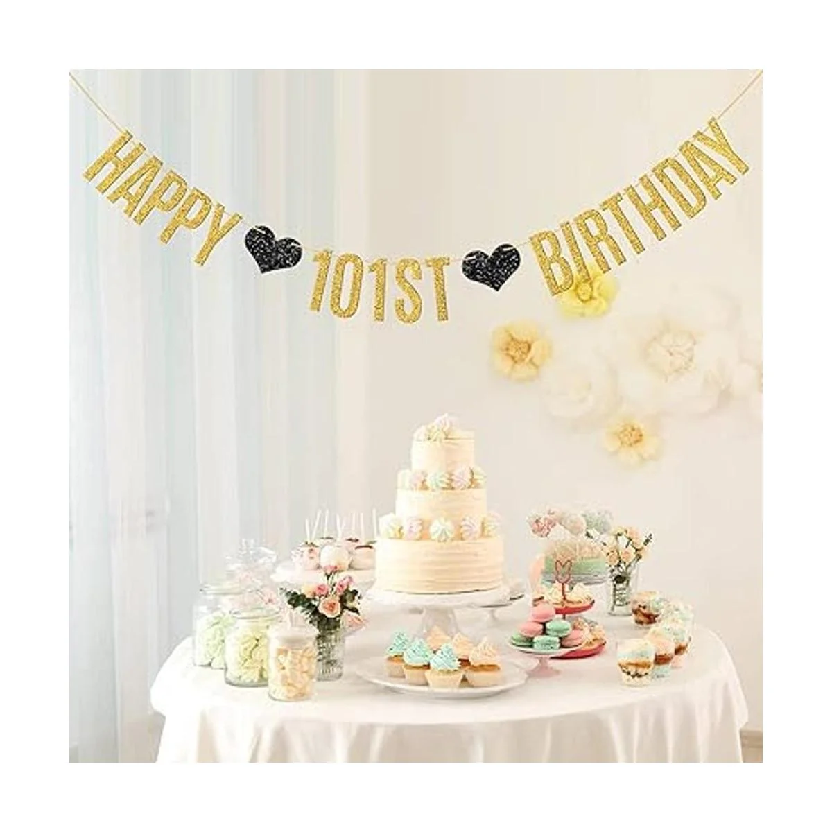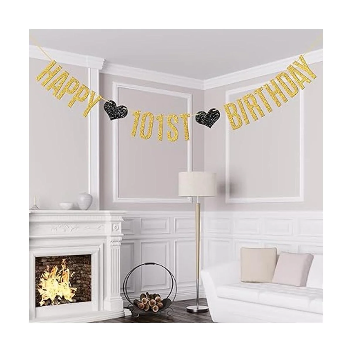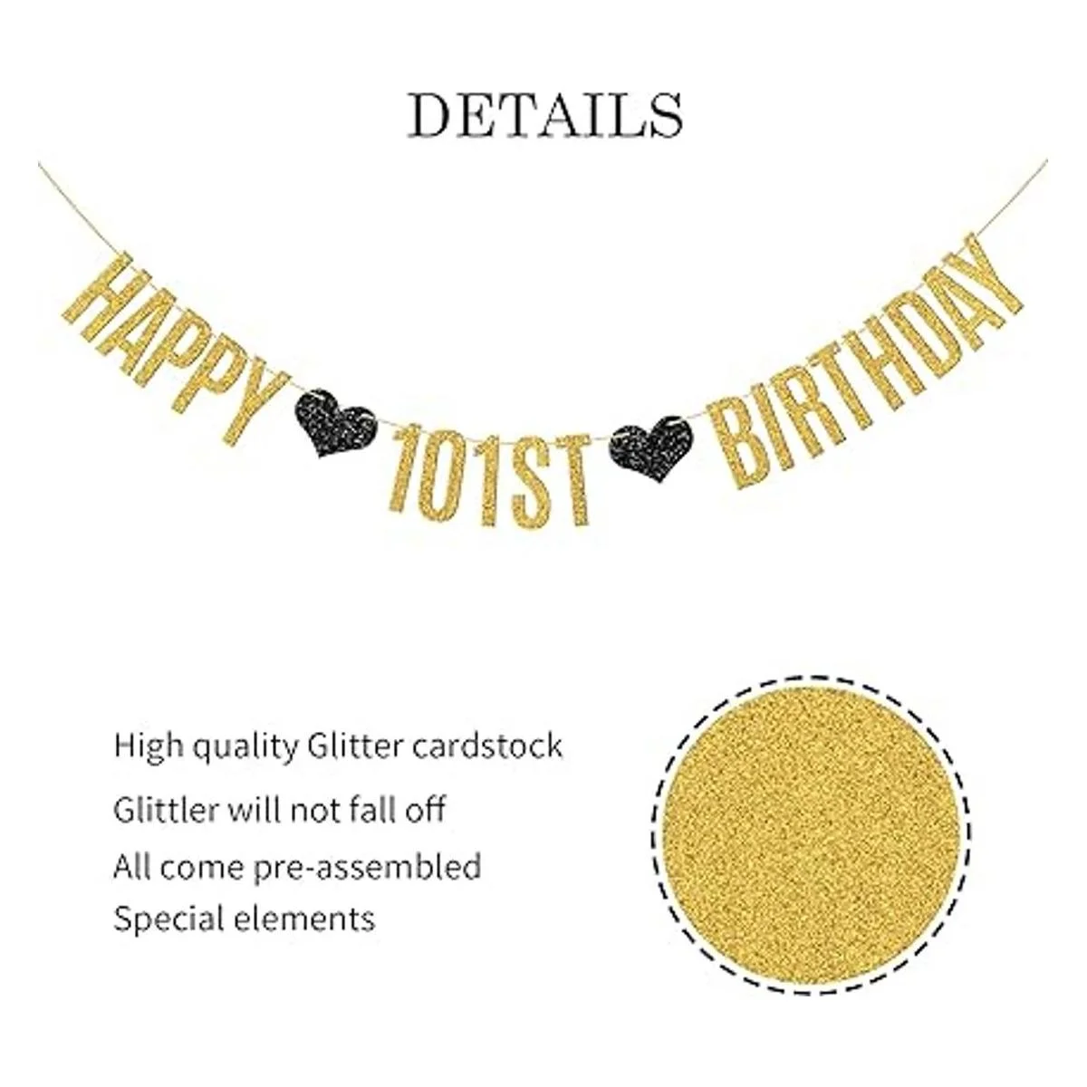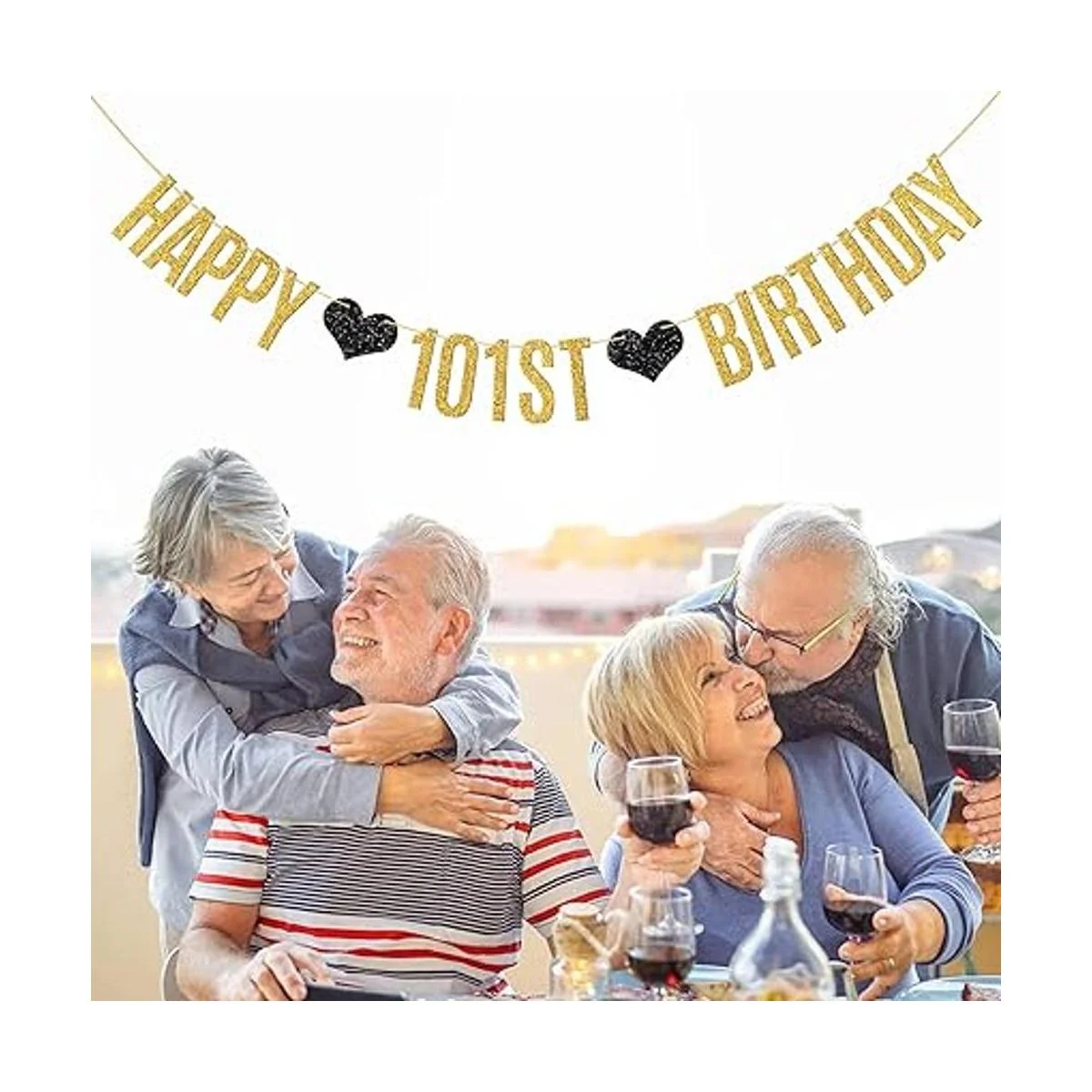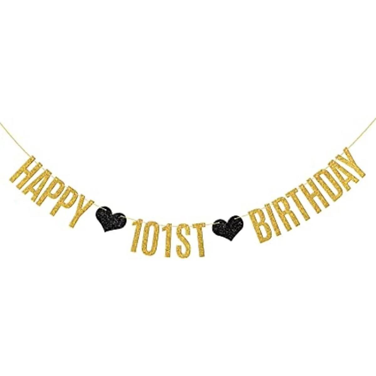 WeBenison Bandera de cumpleaños para 101 años de amor 101 años de edad, color dorado