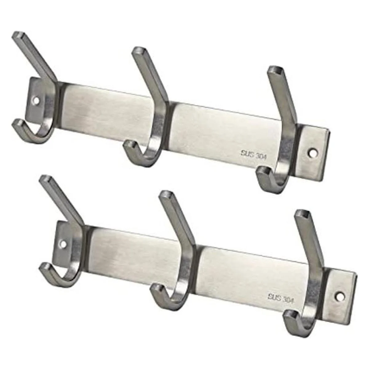 WEBI Barra de riel para colgar toallas de baño SUS 304 de alta resistencia, 3 ganchos, para dormitorio, baño, vestíbulos, pasillos, entrada, gran hogar, almacenamiento y organización de oficina, acabado cepillado, paquete de 2