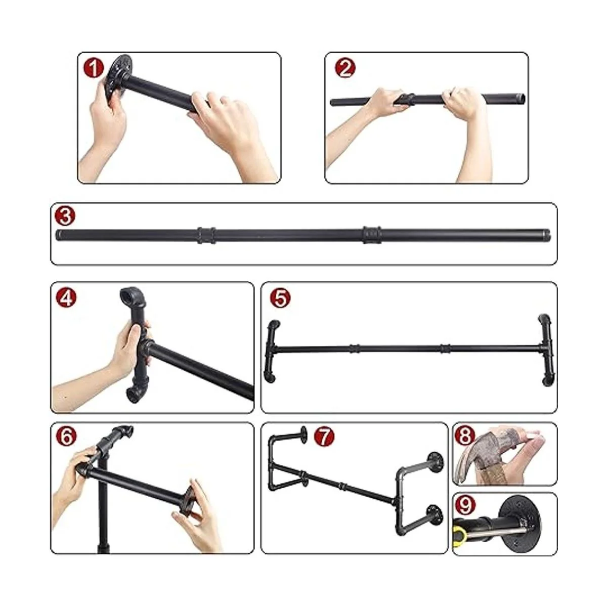 Fácil de montar, incluye 1 perchero para tuberías, tornillos, anclaje de plástico para pared sólida.