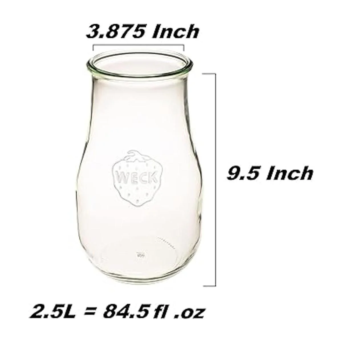 Weck Jars Tarros de tulipán Weck de 2,5 litros Tarros de inicio de masa agria Tarros de cristal grandes para masa fermentada Tarro de iniciación con tapa de vidrio Tarro de tulipanes con boca ancha Adecuado para enlatado y almacenamiento 1 tarro 1