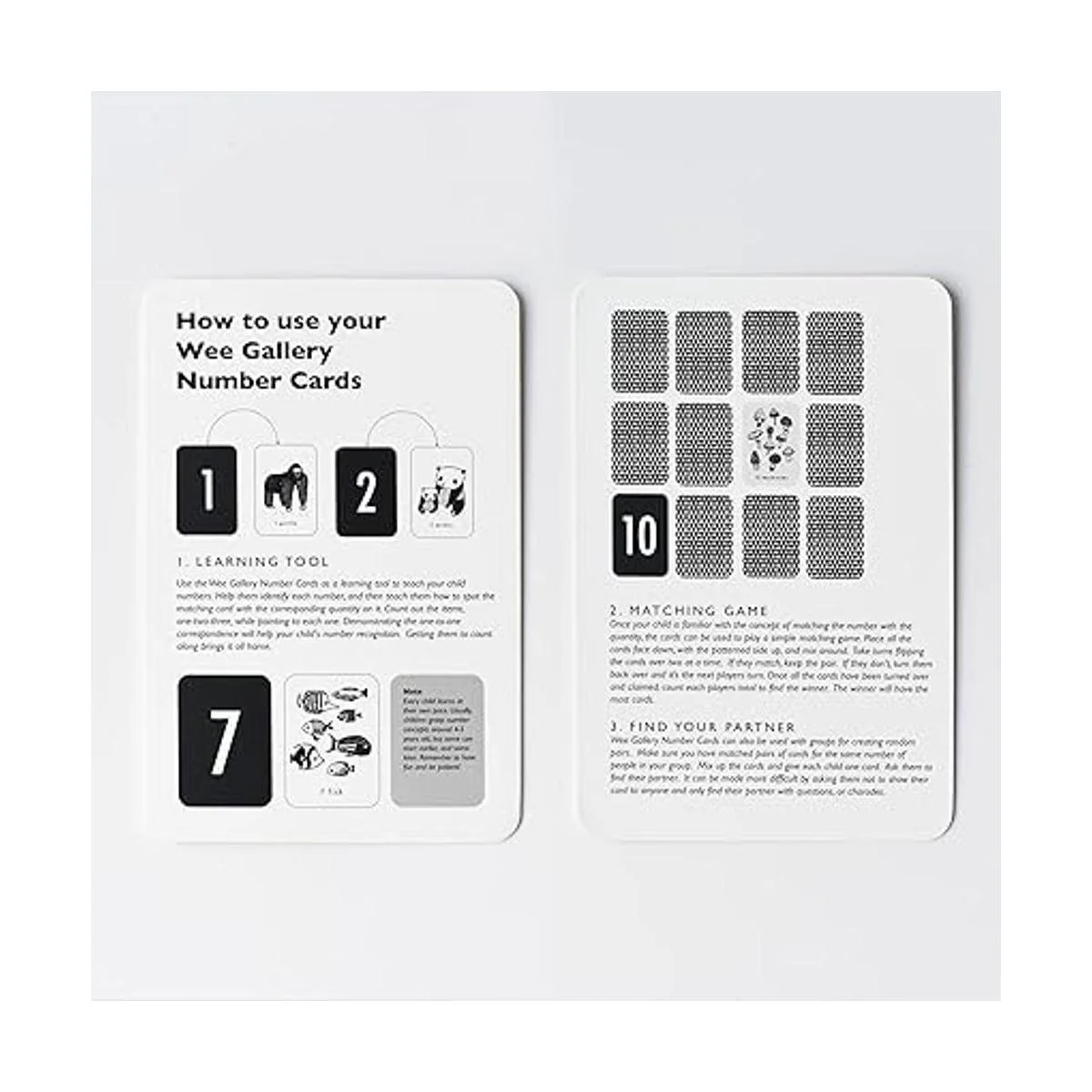 Wee Gallery Tarjetas de números naturales, tarjetas educativas de números para niños, bebés, niños pequeños, animales y números blancos y negros, tarjetas de conteo y aprendizaje para estimulación visual, desarrollo cognitivo
