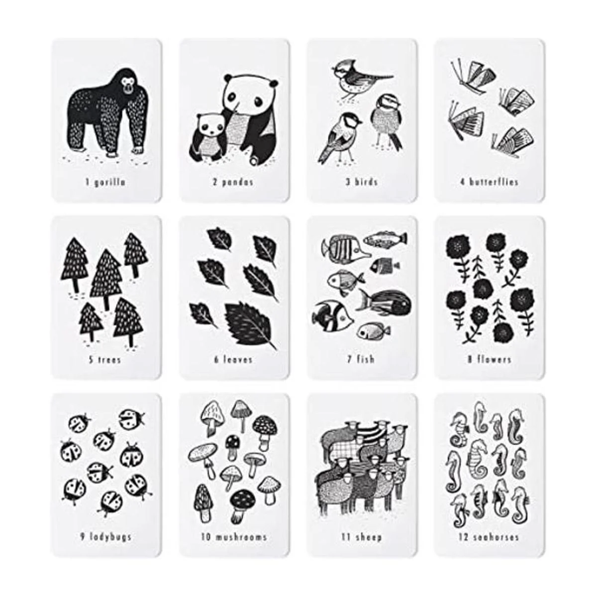 Inspira el aprendizaje sin pantalla a cualquier edad: 24 tarjetas bellamente ilustradas: 12 tarjetas cuentan con hermosas imágenes de pandas, pájaros, peces, árboles y más animales; las otras 12 muestran números blancos atrevidos sobre un fondo negro, para que tu hijo pueda contar y combinar el número con la imagen correspondiente como una actividad divertida. Este juego también incluye una tarjeta de instrucciones sobre cómo utilizar las cartas como un juego de emparejamiento de memoria.
