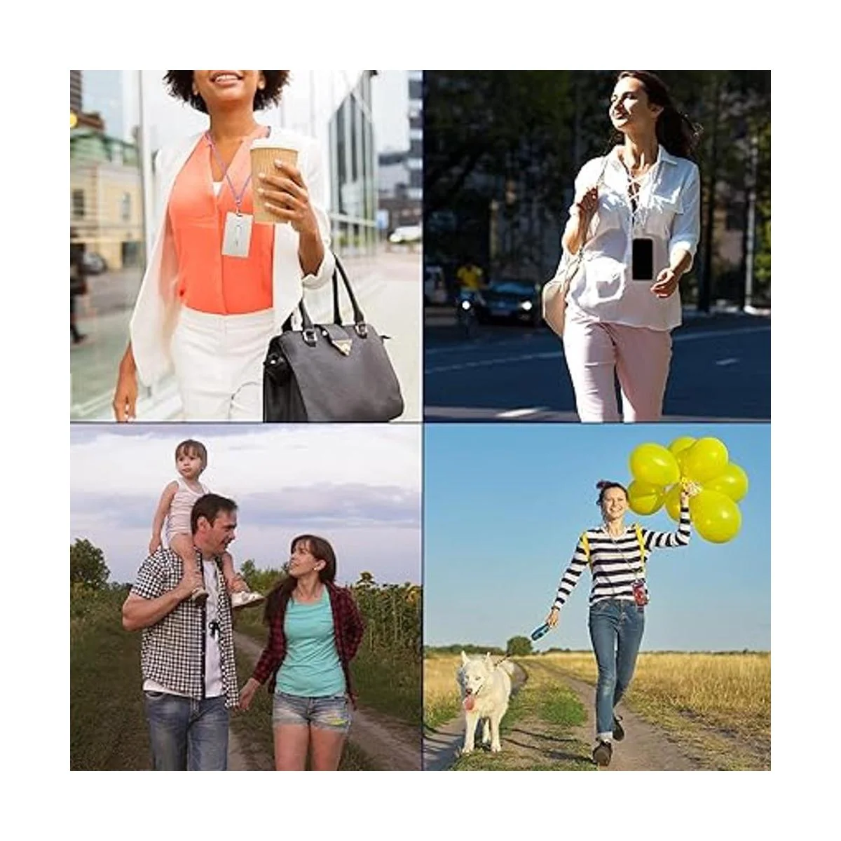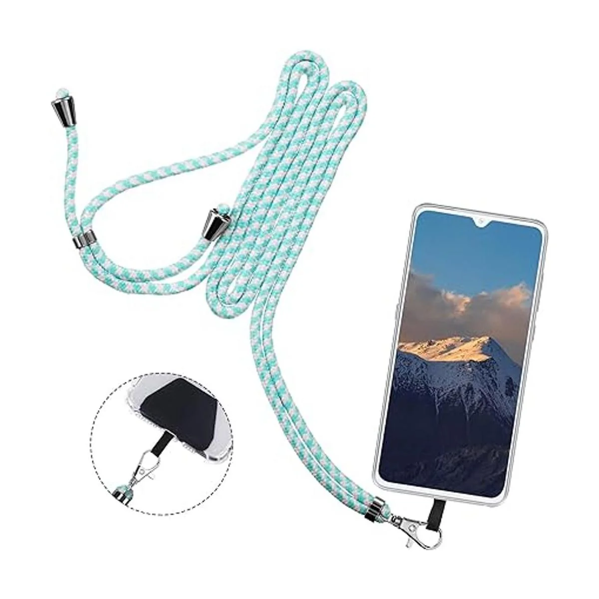 El paquete incluye: 4 almohadillas duraderas y 4 cordones para el teléfono. El cordón para el cuello se puede ajustar para usarlo cruzado ya que son lo suficientemente largos para compartir y reemplazar de la forma que quieras. Nota: la funda del teléfono no está incluida.