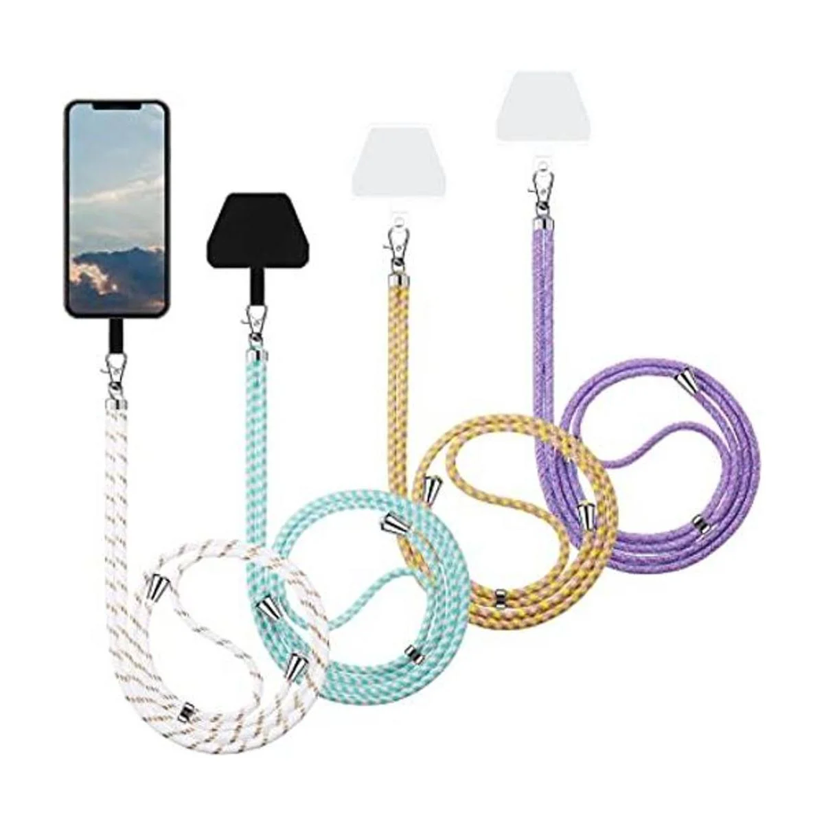 Weewooday 4 cordones universales para teléfono celular, cordón ajustable de nailon desmontable y 4 almohadillas negras y transparentes para la mayoría de teléfonos inteligentes serie de colores claros
