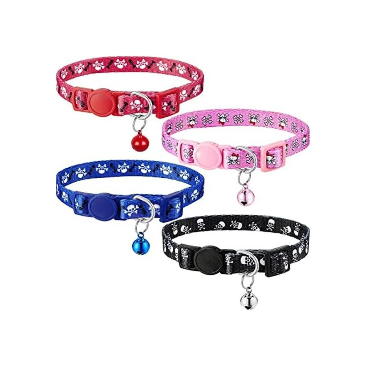4 estilos de patrones: el paquete incluye 4 collares de calavera para gatos en varios estilos y diferentes colores, cantidad suficiente para que tu mascota lo use y reemplaze, incluso puedes compartirlos con tus amigos y familiares que poseen mascotas pequeñas, disfrutando de la diversión juntos