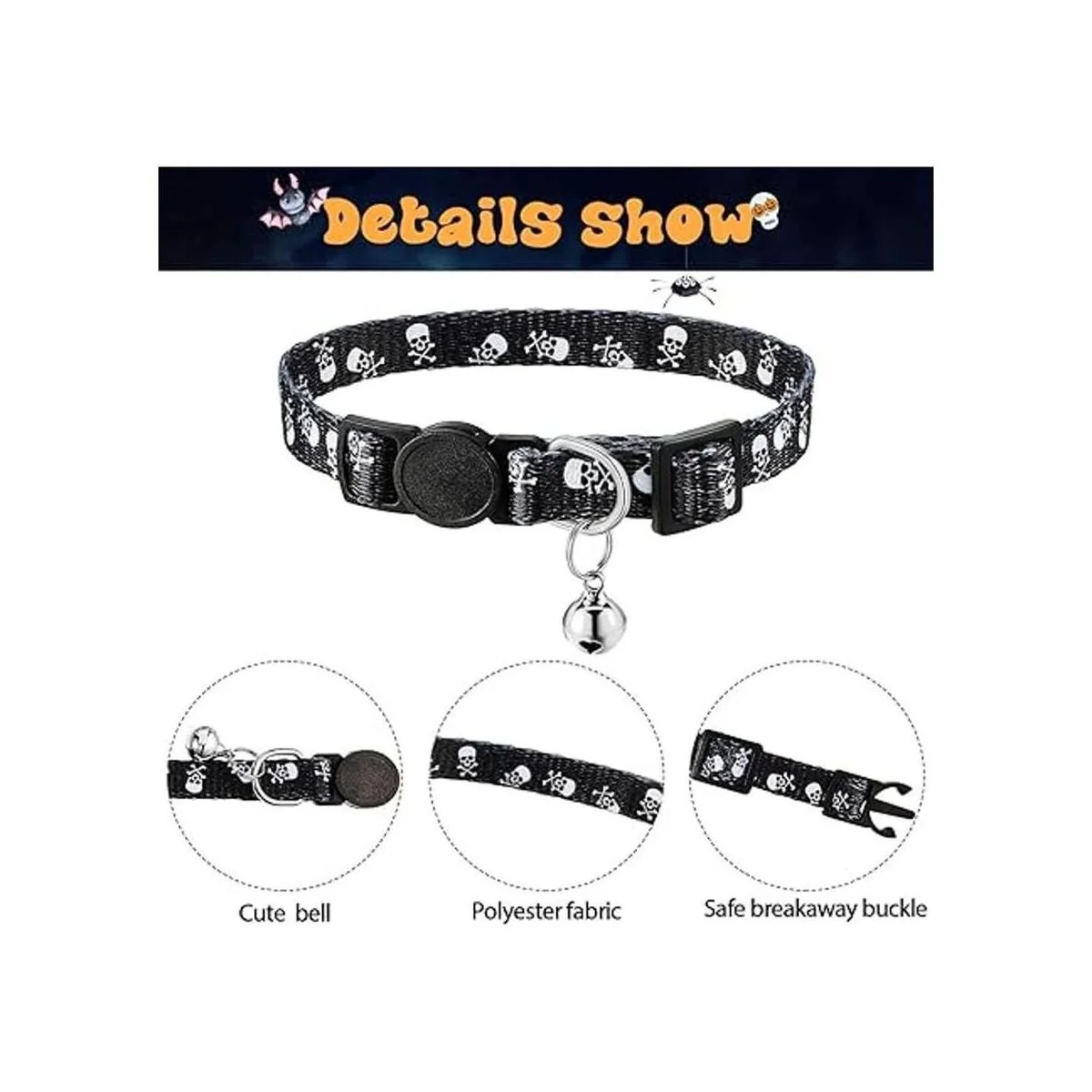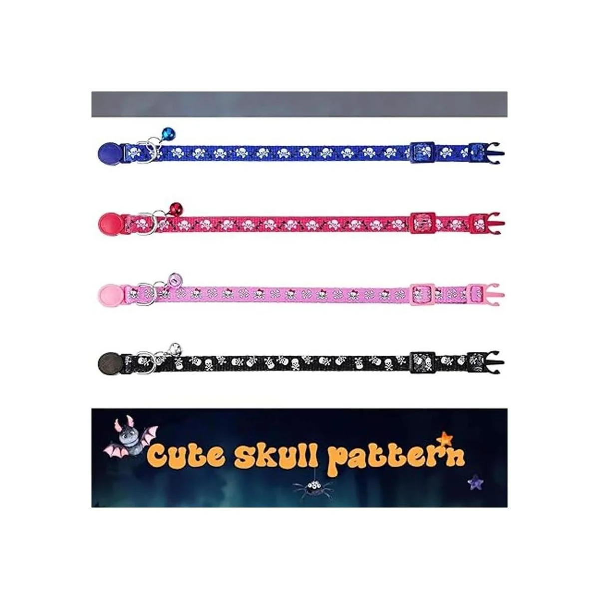 Weewooday Collar de gato de calavera de Halloween, 4 piezas con cinta de campana, collar ajustable para gatos con patrones de calavera para gatito