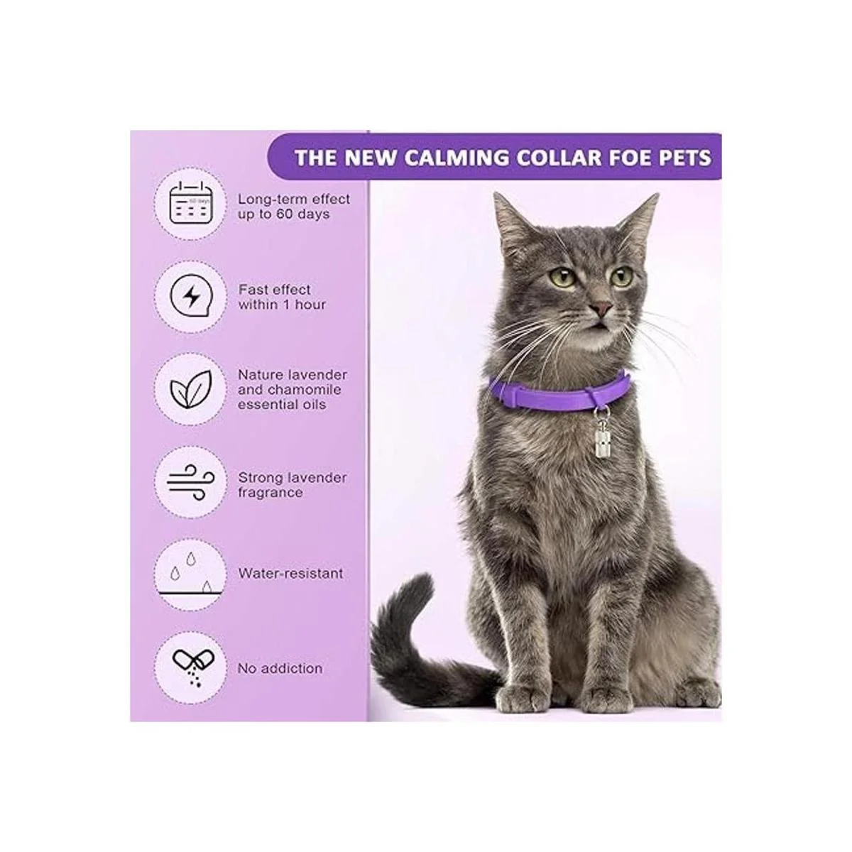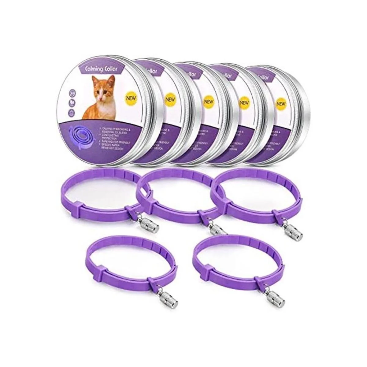 Weewooday Juego de 5 collares calmantes para gatos ajustables e impermeables para gatos que reducen la ansiedad y el estrés, collares para gatos con 5 colgantes de identificación de mascotas morado