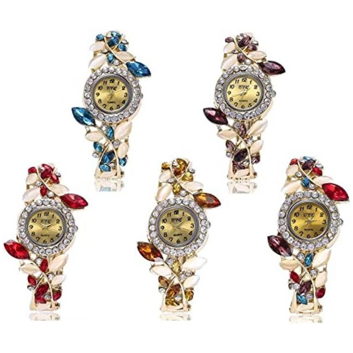 Weicam Paquete de 5 pulseras de reloj de lujo para mujer, diseño de flores y diamantes, joyería retro al por mayor, , Movimiento de cuarzo