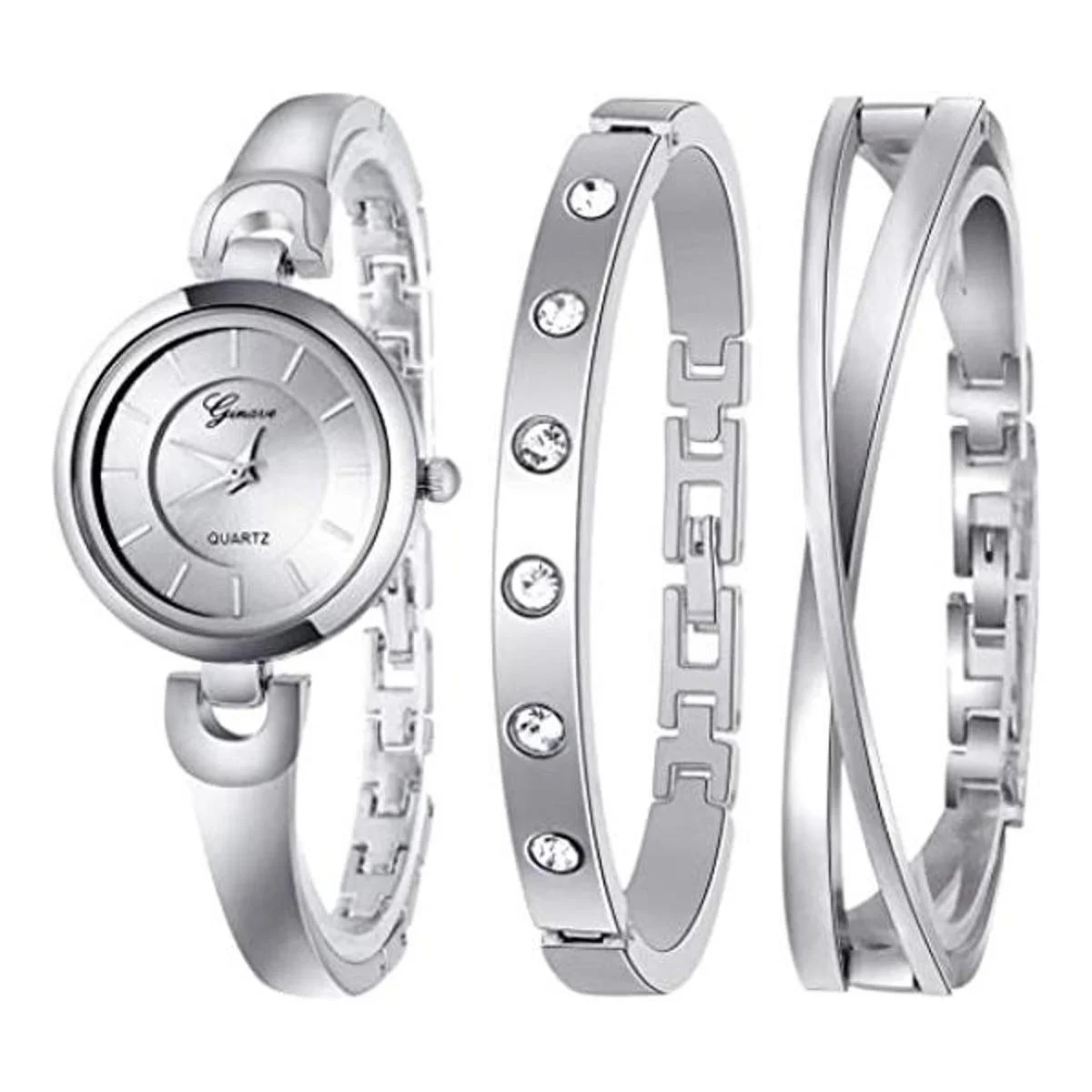 Diseño: reloj 2 pulseras, reloj simple y pulsera con diamantes de lujo.