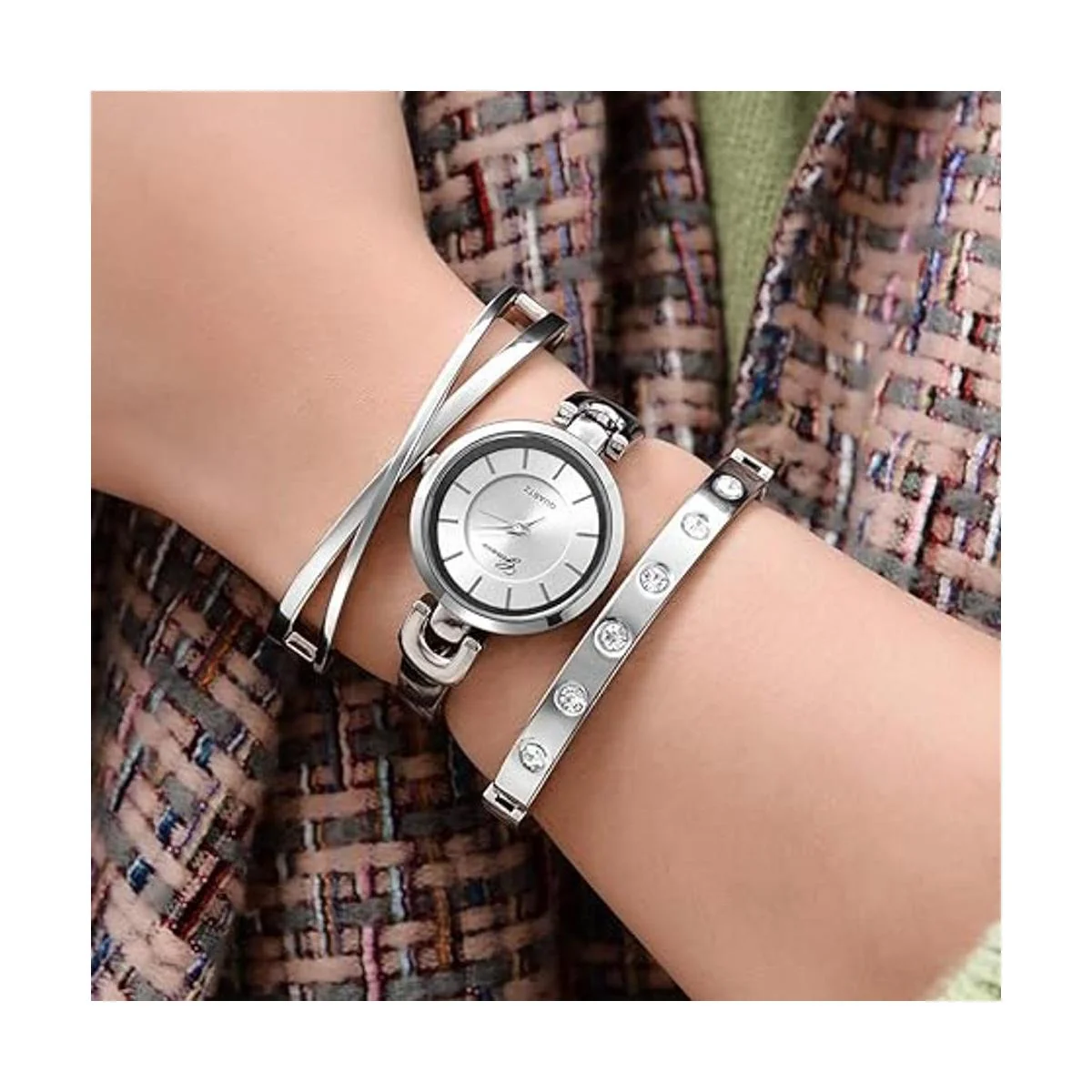 1 reloj para mujer y 2 pulseras.