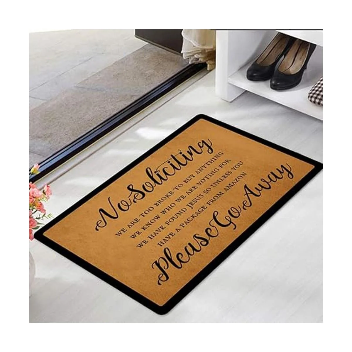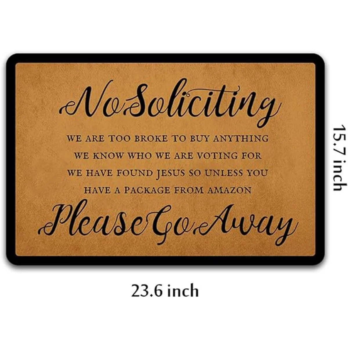 Weilon Tapete de goma antideslizante para puerta de entrada, divertido con texto en inglés Welcome No Soliciting Please Go Away para interiores y exteriores, 23.6 pulgadas de ancho x 15.7 pulgadas de largo