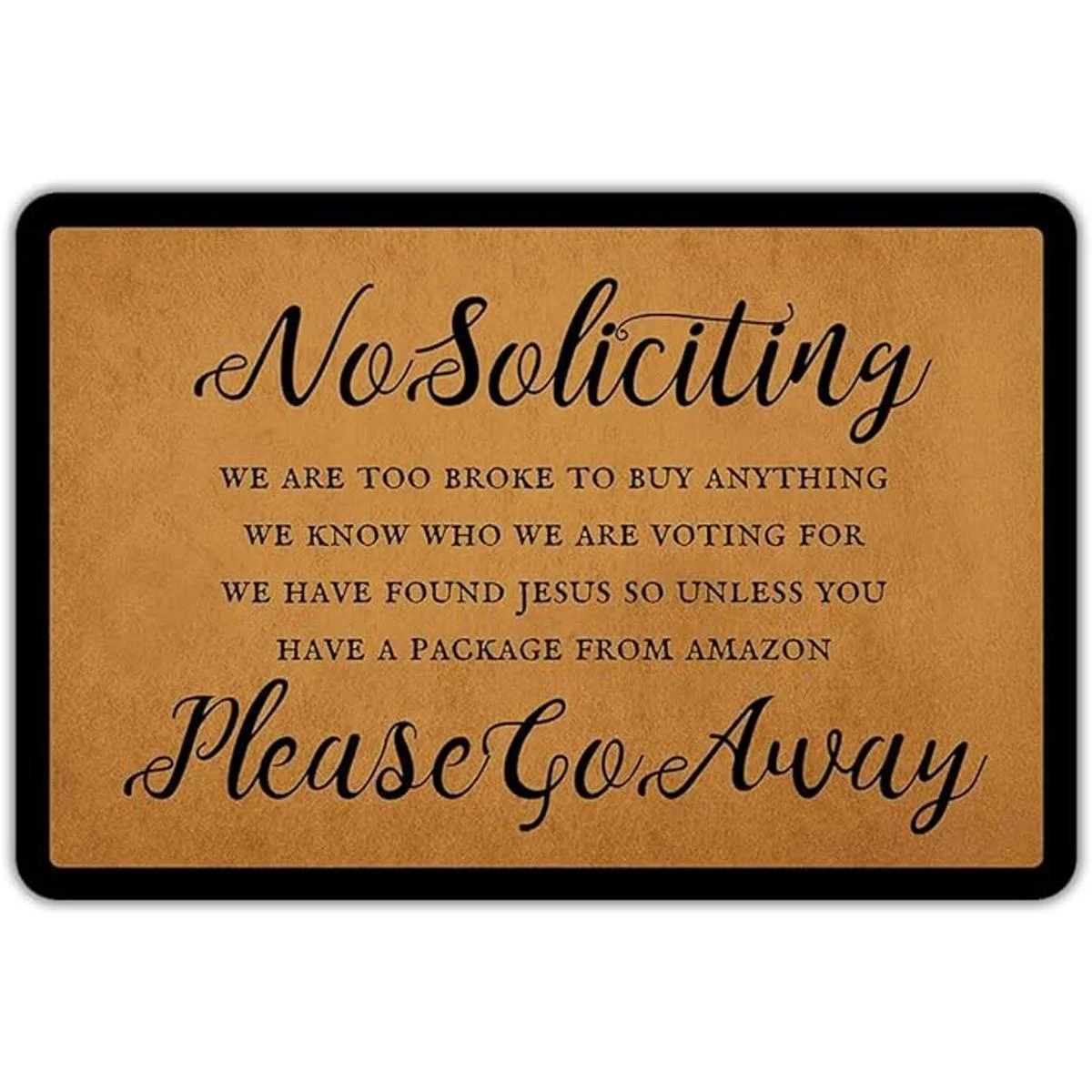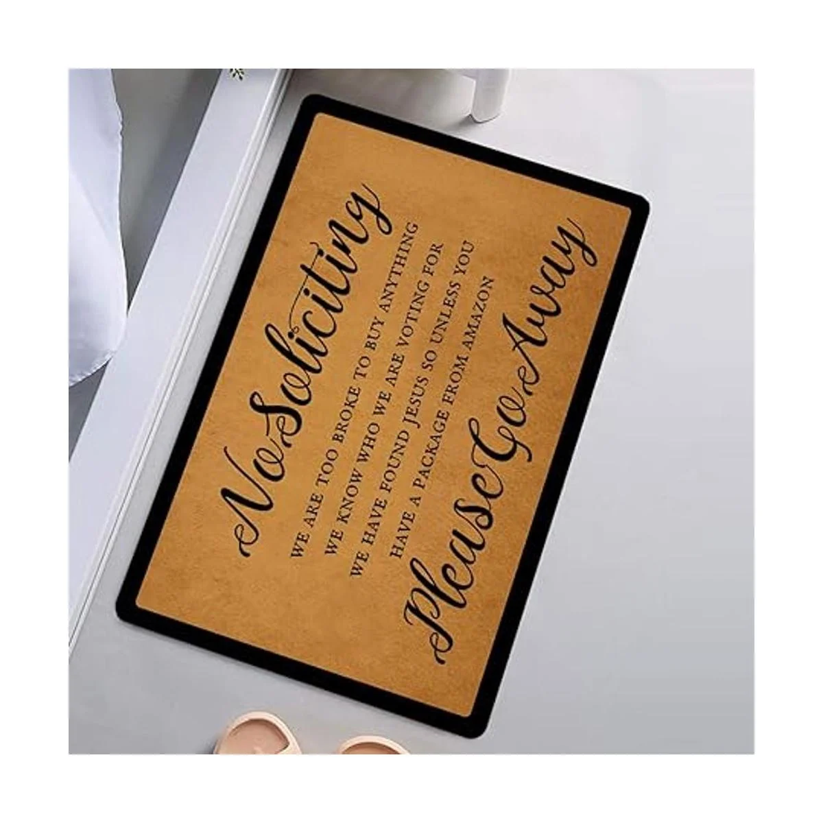 Weilon Tapete de goma antideslizante para puerta de entrada, divertido con texto en inglés «Welcome No Soliciting Please Go Away para interiores y exteriores, 23.6 pulgadas de ancho x 15.7 pulgadas de largo