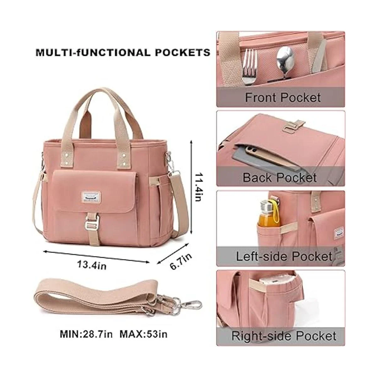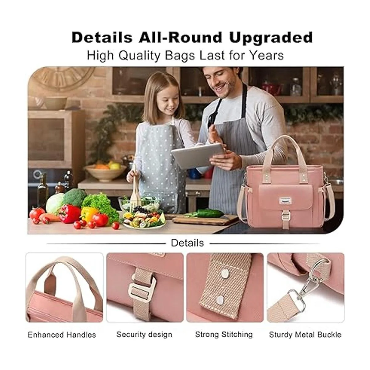 Weitars Bolsa de almuerzo para mujeres, para el trabajo, lonchera aislada, bolsa de almuerzo extragrande, bolsa abierta, bolsa refrigerante con correa de hombro extraíble, con bolsillo lateral, bolsa de almuerzo para pícnic, senderismo, escuela, playa