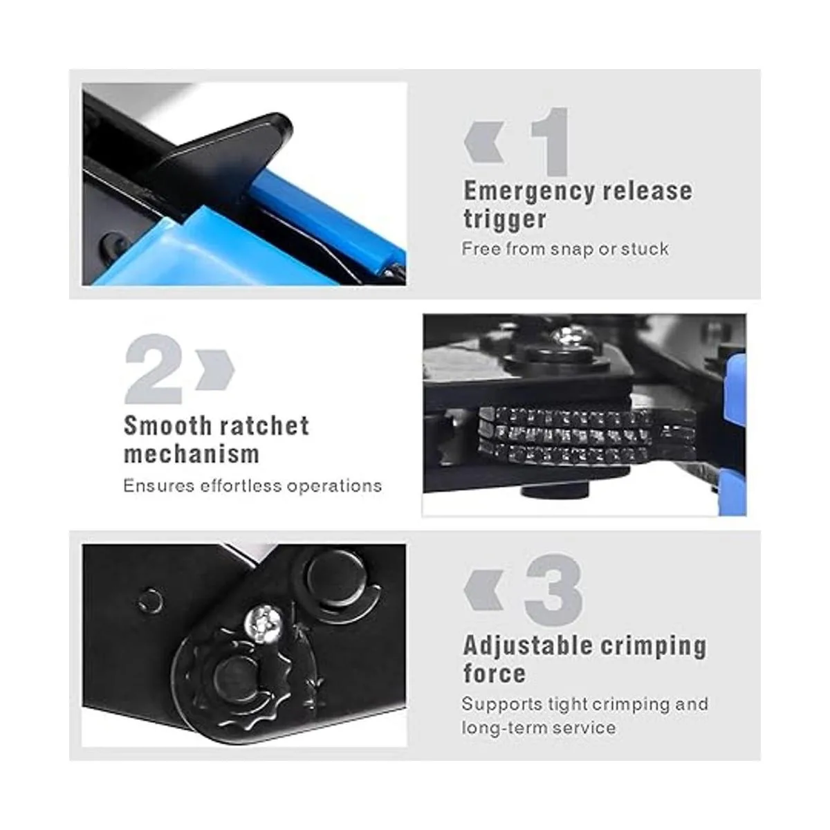 Sin esfuerzo: el mecanismo de trinquete suave y la perilla de ajuste de tensión hacen que los engarzados sean mucho más fáciles, lo que es importante para un funcionamiento prolongado