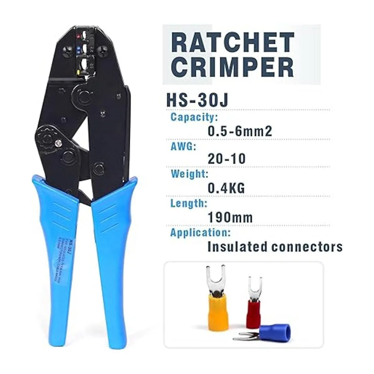 WEKESIGO HS30J Terminales de alambre aislados profesionales, herramienta de crimpado de trinquete, herramienta de crimpado de alambre, alicates de crimpado de 2010AWG 0,56 mm