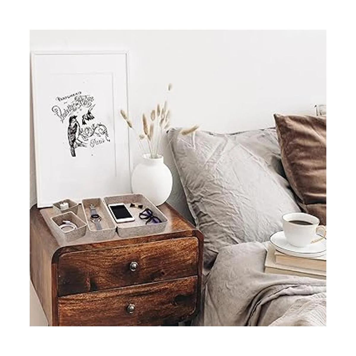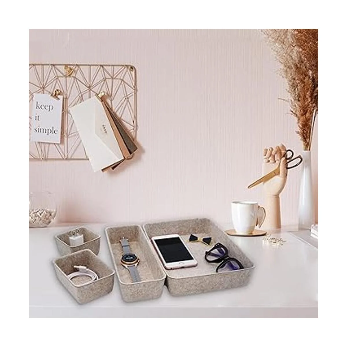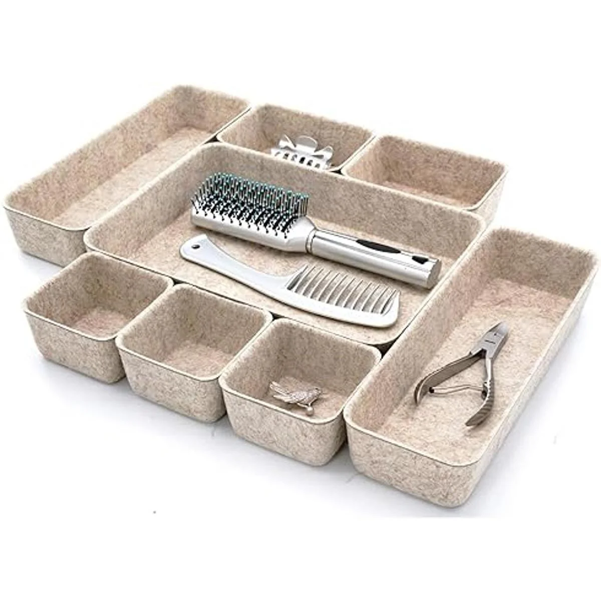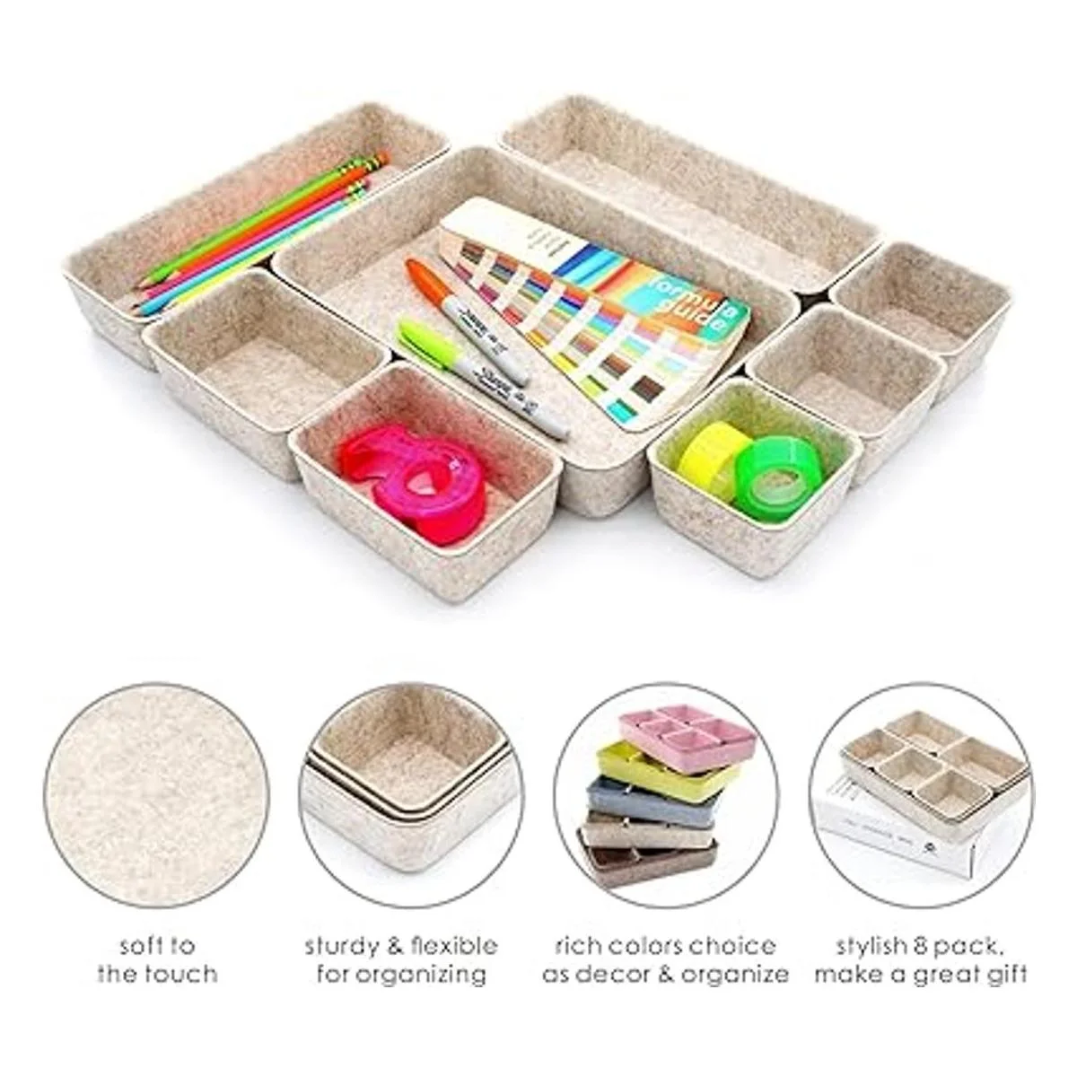 Welaxy Bandejas organizadores de cajones, contenedores de almacenamiento de fieltro, escritorio de oficina, divisiones de dibujo, colores Morandi, estilo de vida nórdico, decoración interior natural, caja poco profunda, regalos de 8 piezas avena