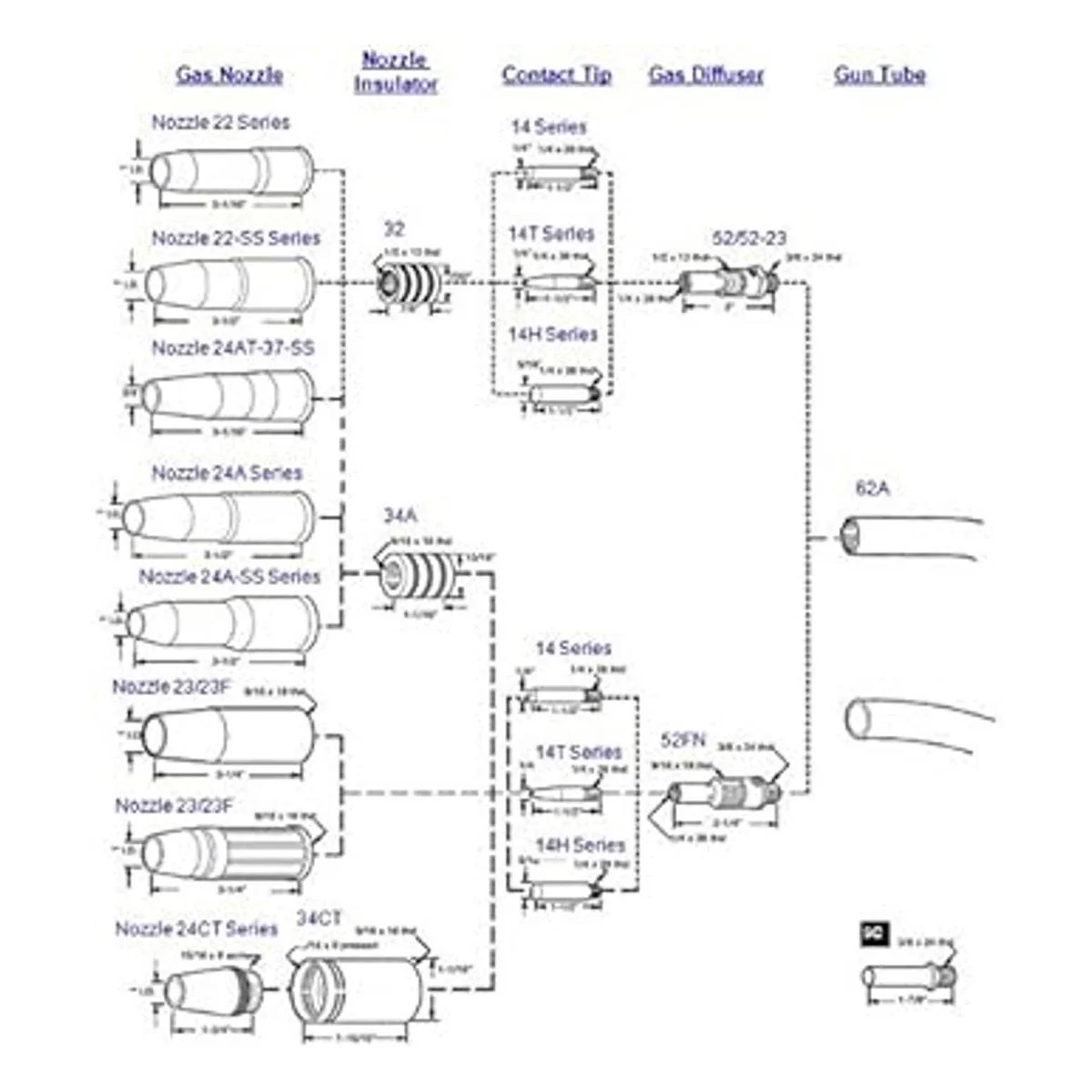 weldingcity 5PK Boquilla Adaptador 32, 34 A, 34 ct y 35 ct para pistolas de Lincoln tweco de soldadura MIG