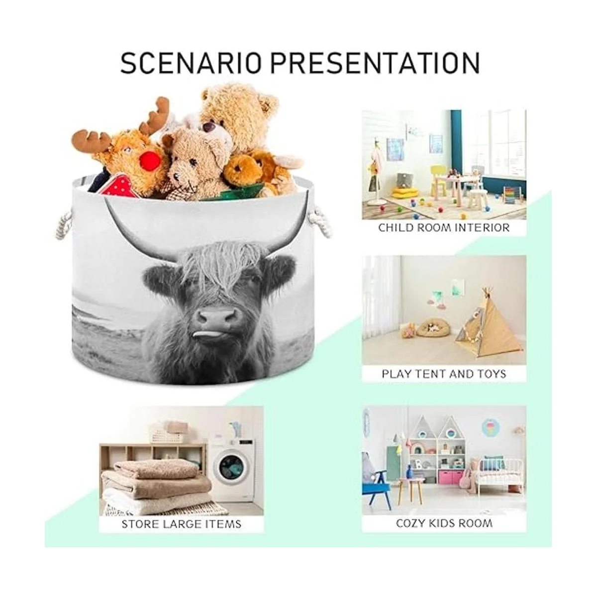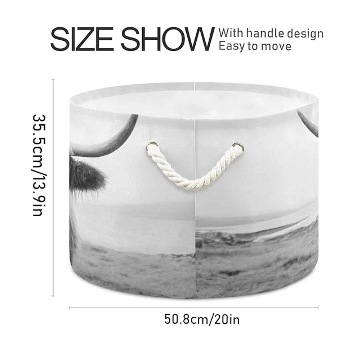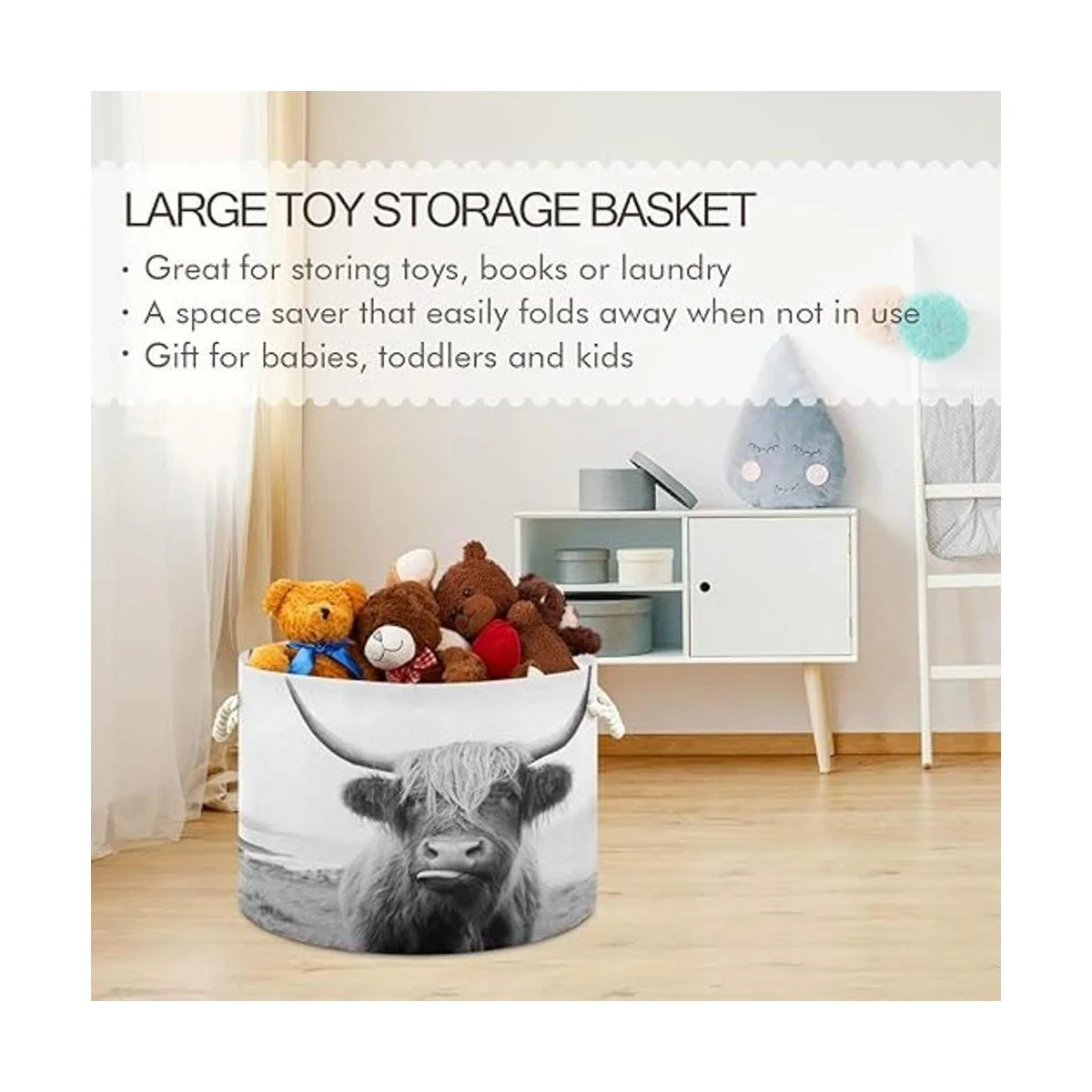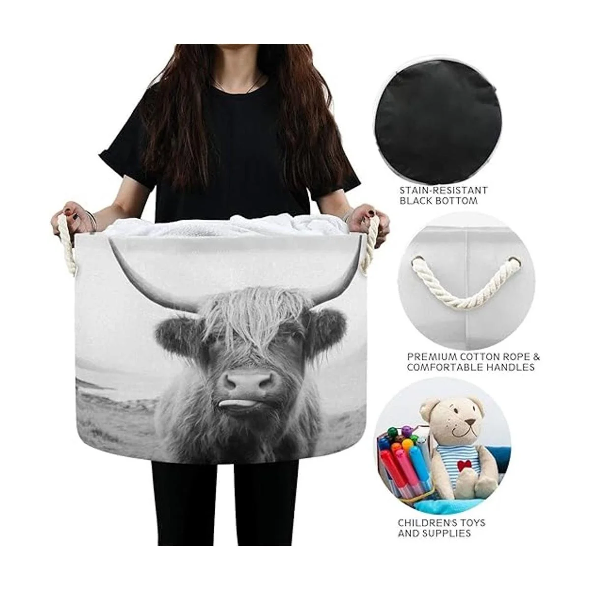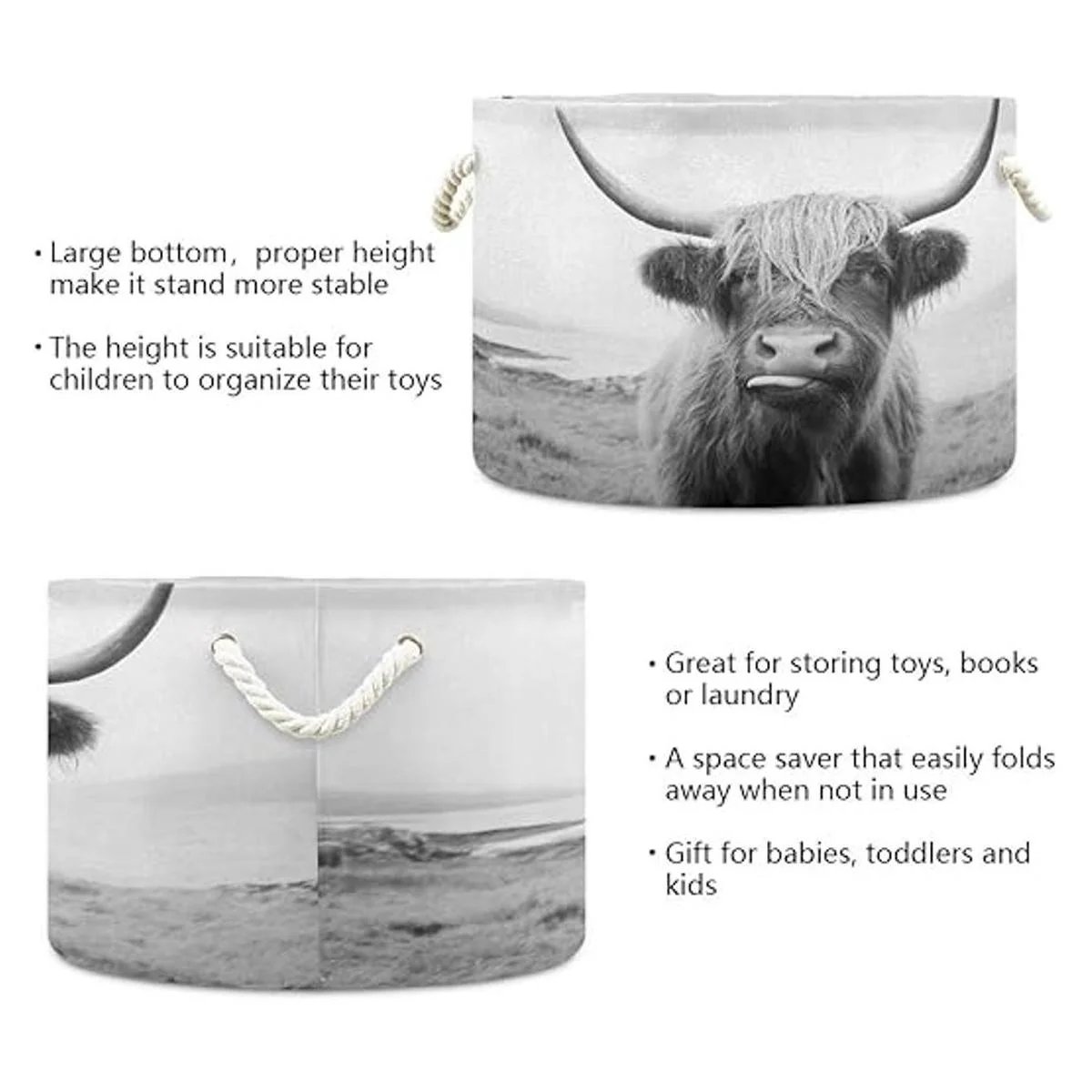 WELLDAY Cesta de cuerda de algodón para ropa de bebé de vaca de las tierras altas para mantas y juguetes para almacenamiento
