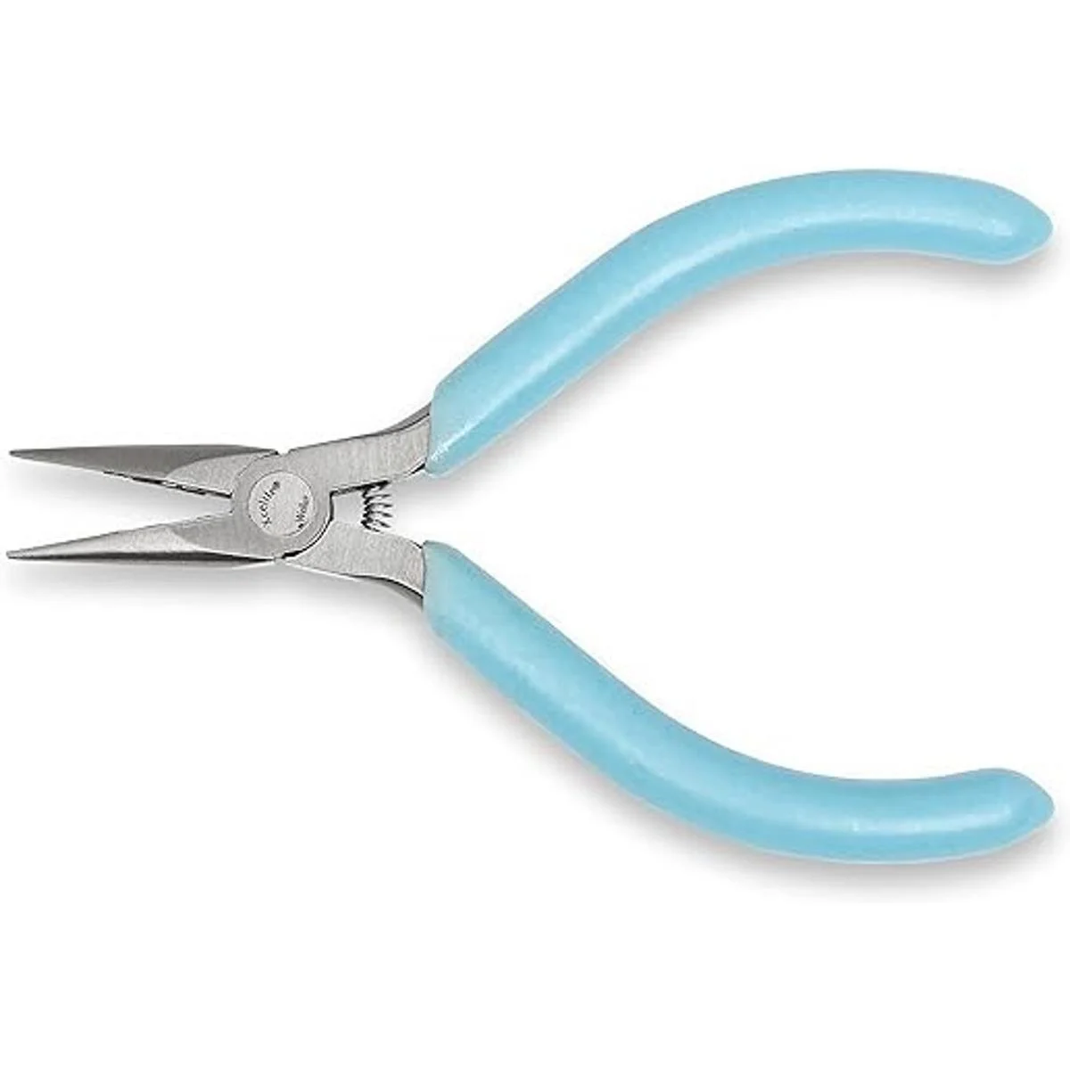 Xcelite by Weller L4GN Alicates de punta de aguja subminiatura con mango de agarre acolchado azul, mandíbula lisa, 4 pulgadas de longitud, 13/16 pulgadas de longitud de la mandíbula