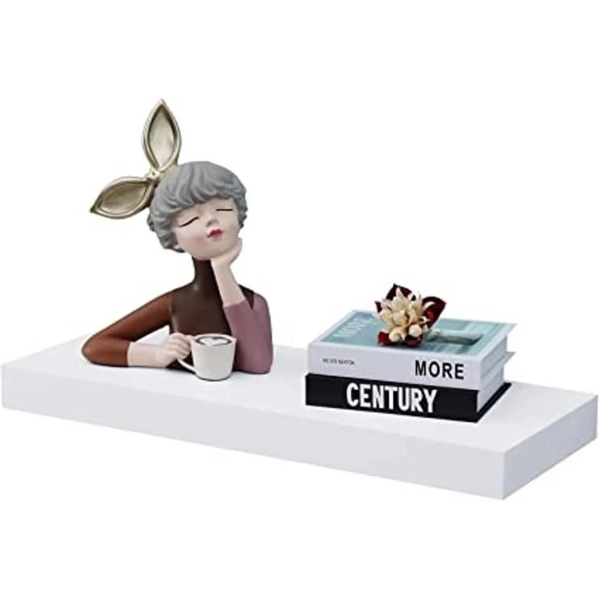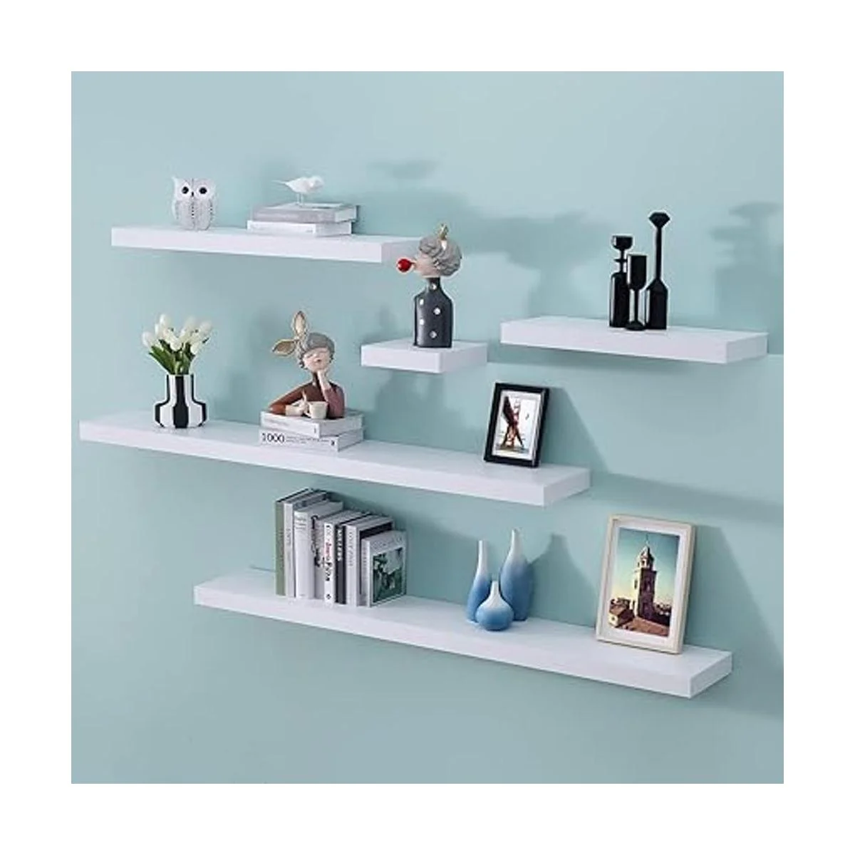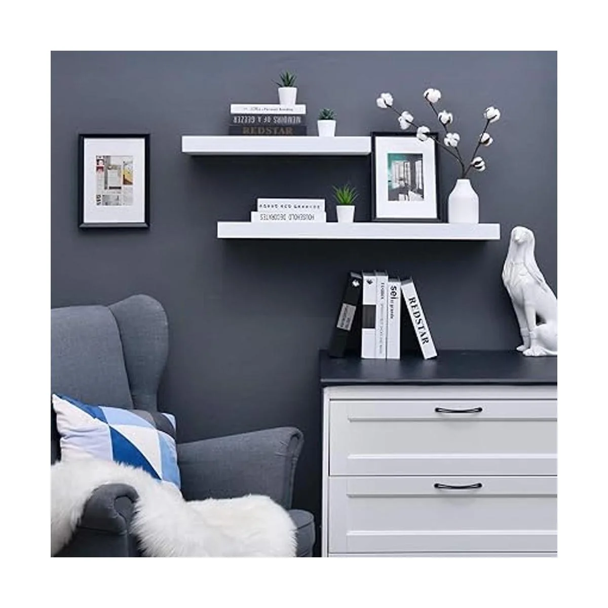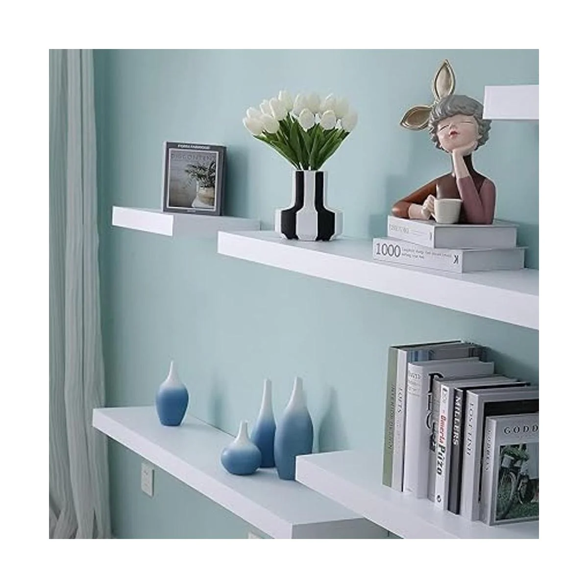 Wellland Estantería flotante para pared, baño, estantes de pared, estantes de madera modernos, estantes para libros, para dormitorio, sala de estar y cocina, Madera, Blanco
