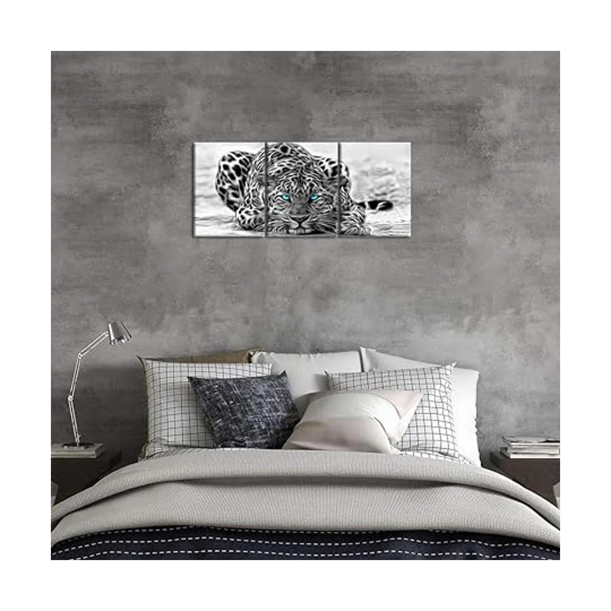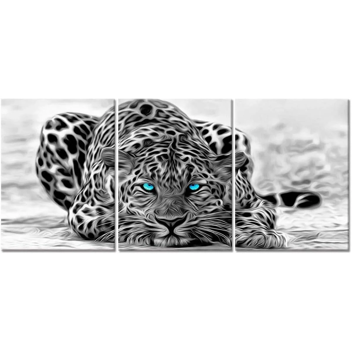 Welmeco Arte de pared abstracto de leopardo con ojos azules y animales, decoración de retrato, imágenes de vida silvestre, póster listo para colgar para la decoración de la habitación 03