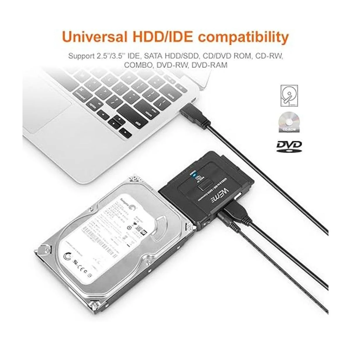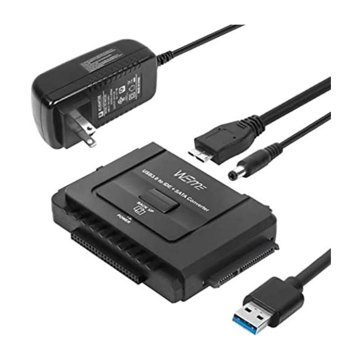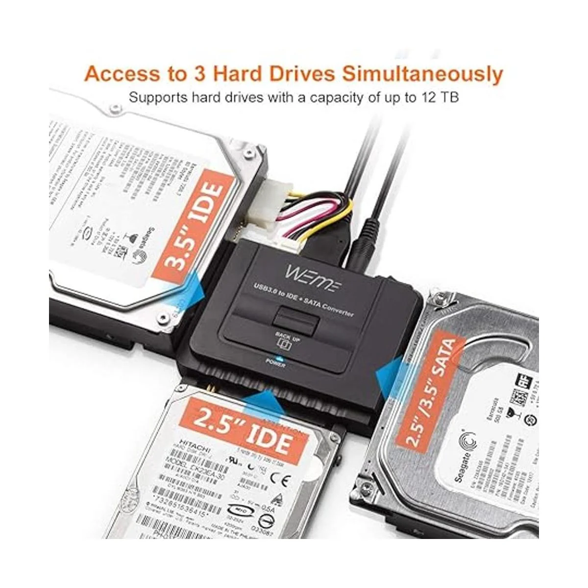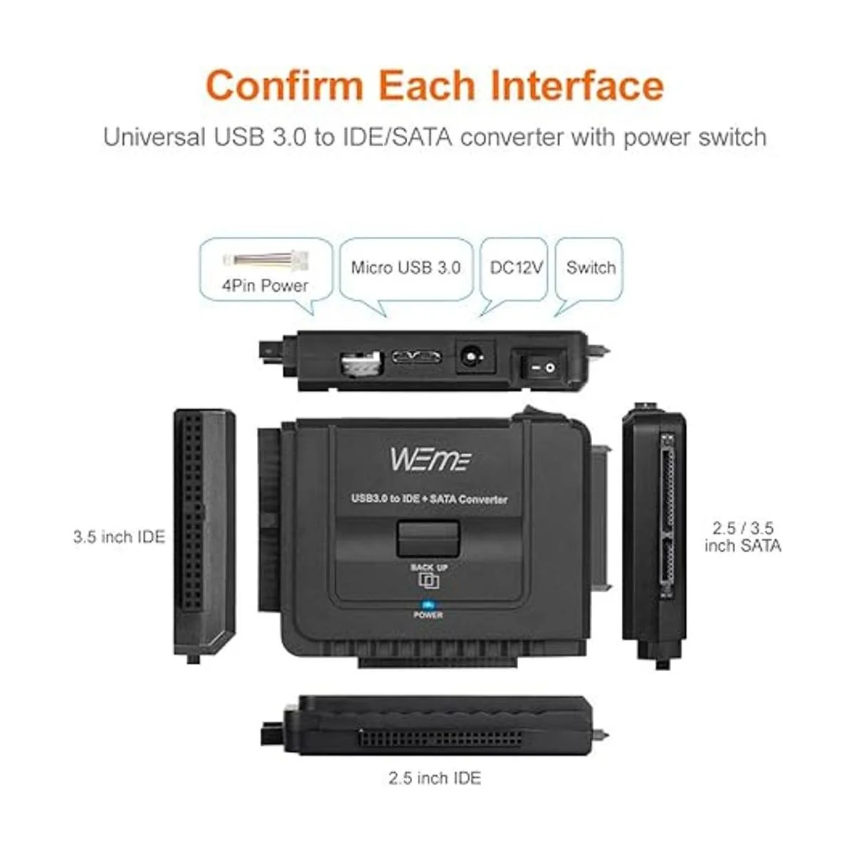 WEme Adaptador USB 3.0 a SATA IDE con convertidor universal de disco duro de 2.5 pulgadas y 3.5 pulgadas para disco duro SSD y disco duro IDE, compatible con copia de seguridad de 12 TB y un solo toque, incluye adaptador de corriente de 12 V y 2 A y cable USB 3.0 para laptop