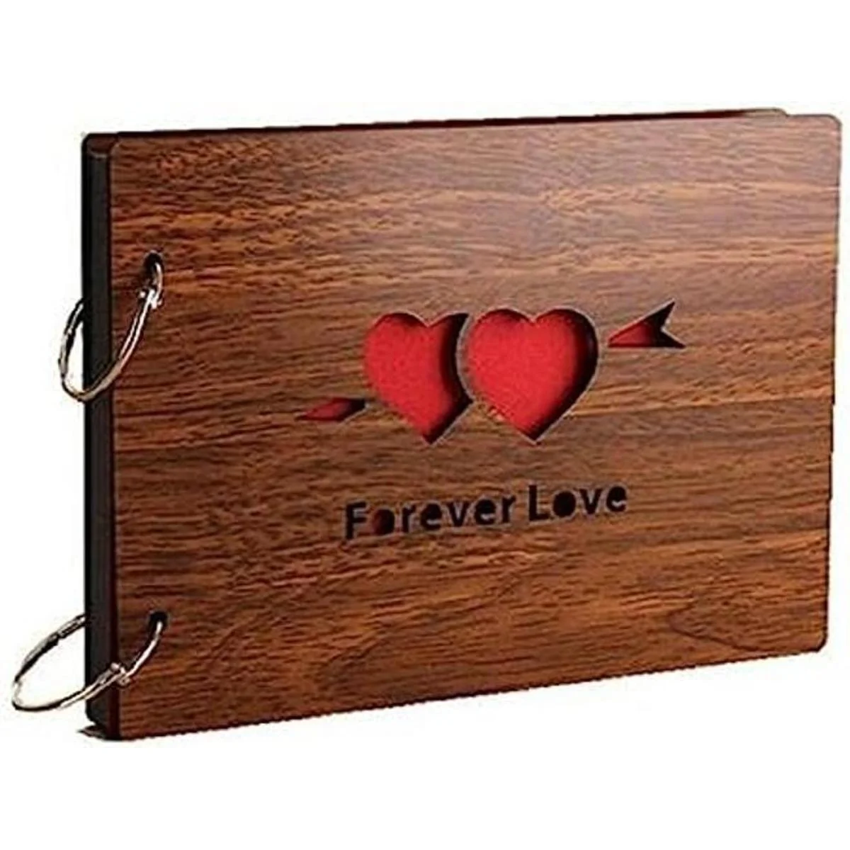 wendin bricolaje álbum de fotos para madera Aniversario Scrapbook 8 x 6 inches de libro de imagen con páginas en negro autoadhesivas para Parejas libro de invitados para boda graduación Viajes Historia de Amor memoria Forever Love