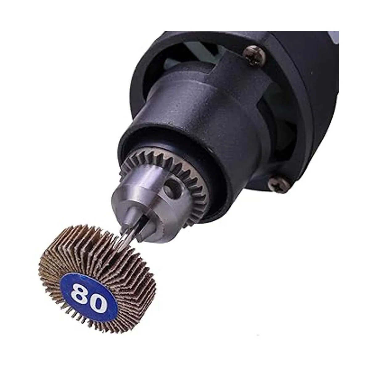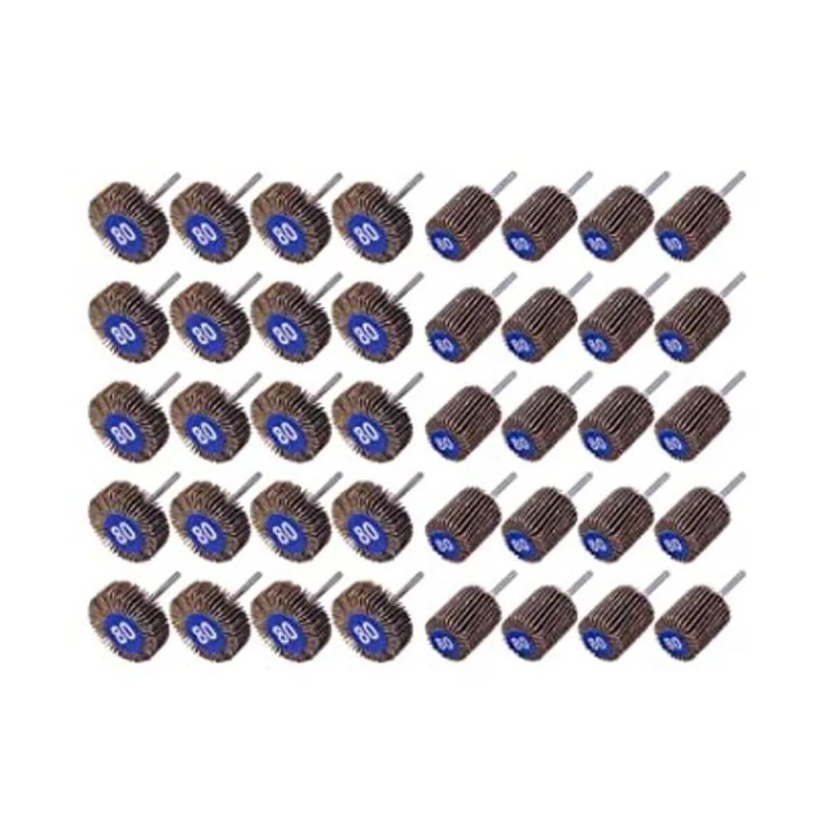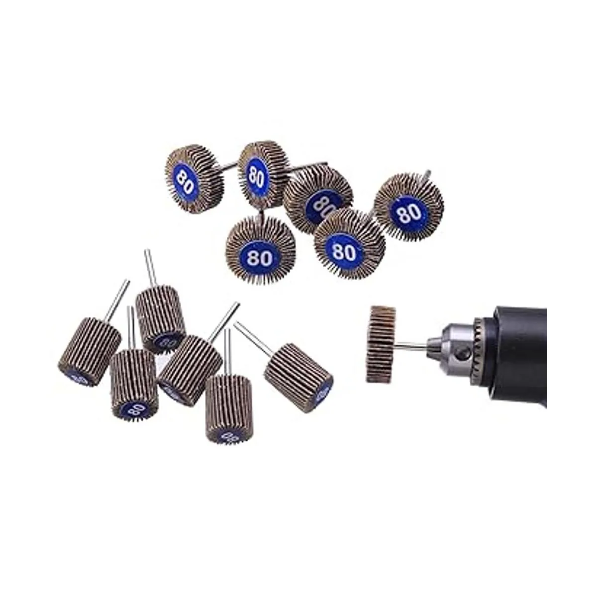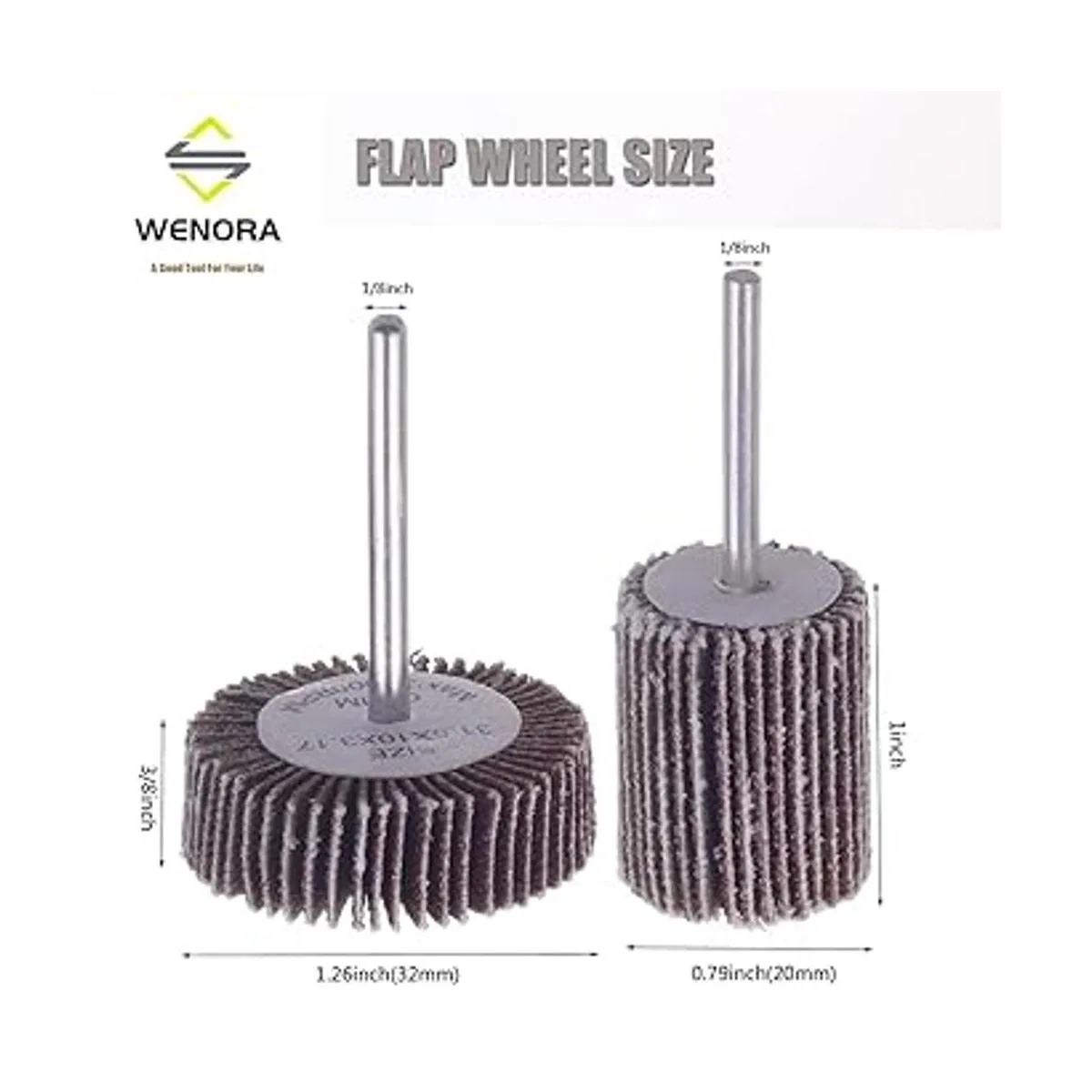 WENORA 40 lijadoras abrasivas de rueda de aleta de grano 80 de 1/8 pulgadas de diámetro de vástago de 1.260 in de grosor y 1 pulgada de grosor abrasivo de papel de lija de 1 pulgada, cabezal de lijado, herramienta rotativa para moler y pulir
