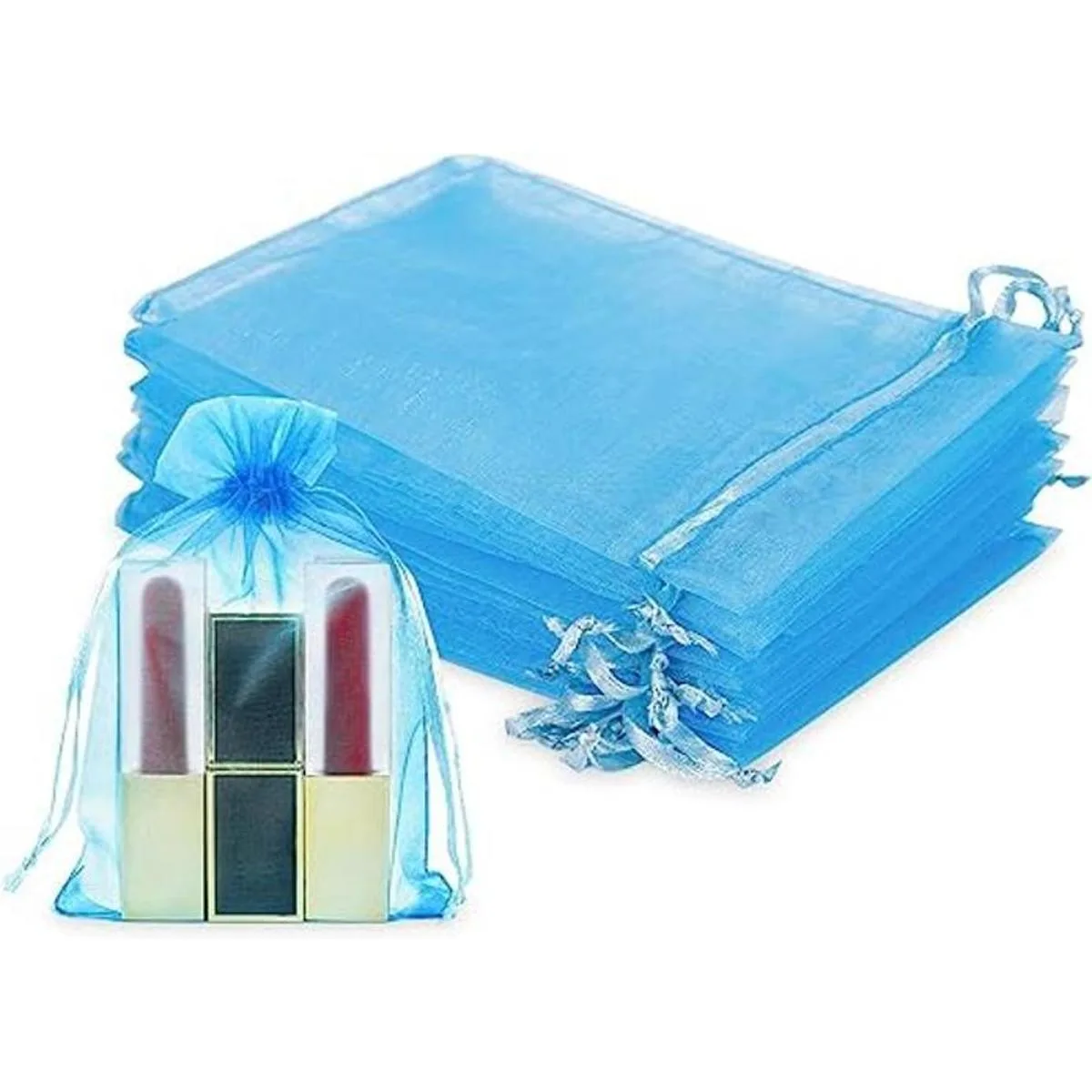 Amplia gama aplicable: las bolsas de organza se pueden utilizar para guardar tus joyas u otras cosas pequeñas, jabones de manualidades, dulces, pequeños regalos, maquillaje, anillos, pulseras, collares, colgantes, ideales para uso en recuerdos de fiesta, bodas, lazos de satén y más elegantes deslumbrantes y atractivos.