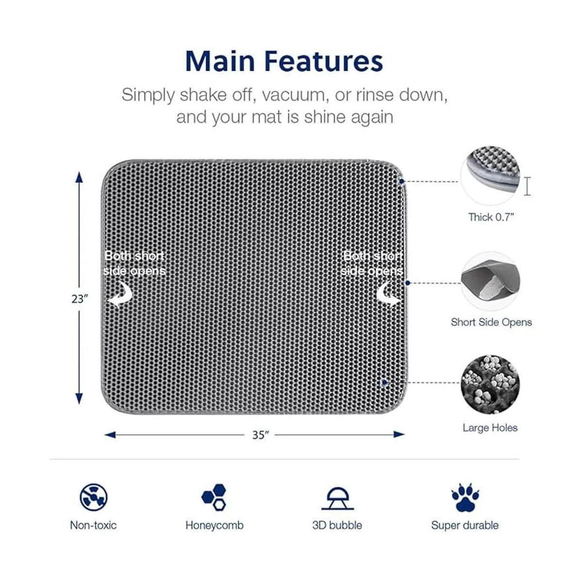 Funciones: atrapa la arena de gatos de las patas de los gatos y cajas de arena con su diseño totalmente probado de doble capa para ayudar a atrapar la arena entre medio y evitar la dispersión de la arena del gato.
