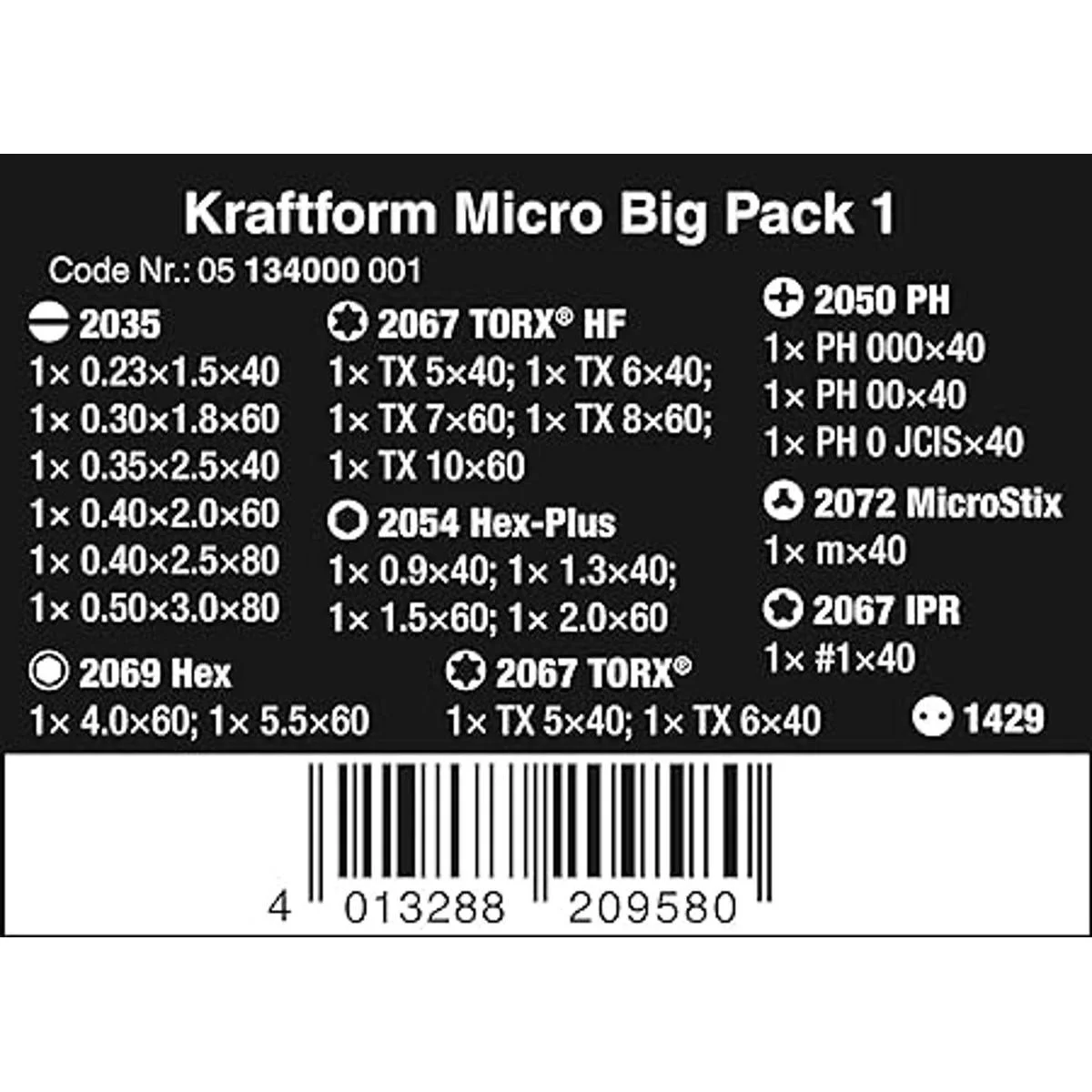 Wera 5134000001 Kraftform Micro Big Pack 1 Juego de destornilladores para aplicaciones electrónicas, 25 piezas