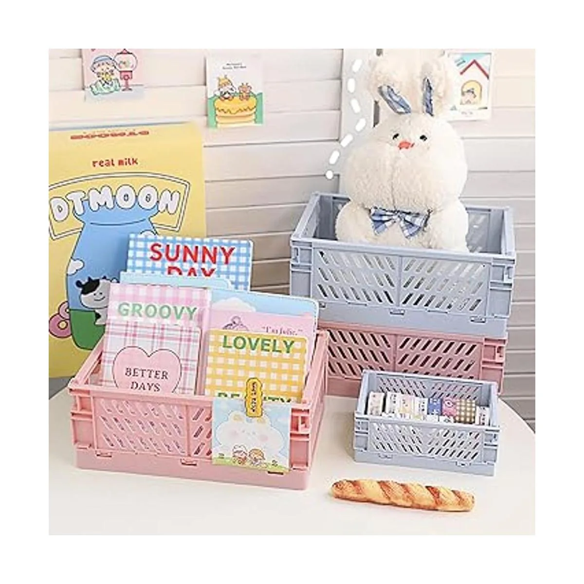 Weraher Cestas de almacenamiento de plástico para organizar el escritorio, organizador de cajones de oficina, 2 medianas 2 pequeñas cajas de almacenamiento plegables duraderas para el hogar, cocina, aula, oficina, dormitorio y baño rosa