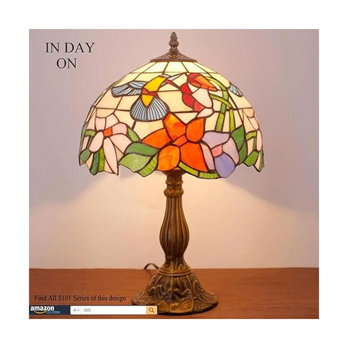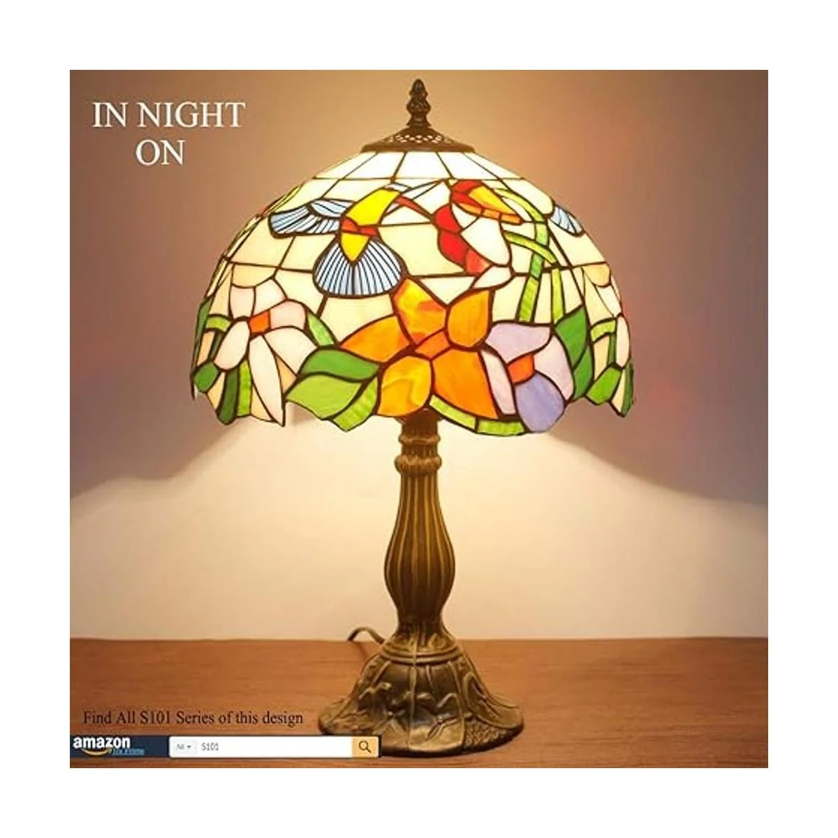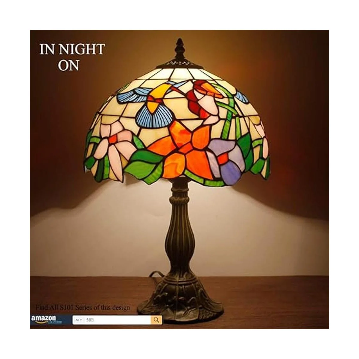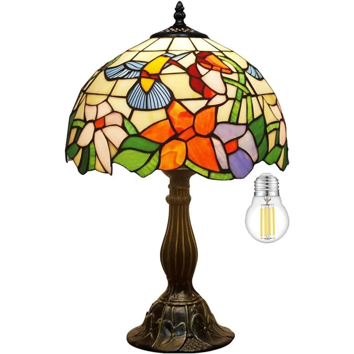 WERFACTORY Lámpara de mesita de noche, estilo Tiffany, lámpara de vidrio de colores, luz de lectura de escritorio de colibrí de 12 x 12 x 18 pulgadas, decoración de mesita de noche, dormitorio, sala de estar, oficina en casa bombilla LED incluida, serie S101