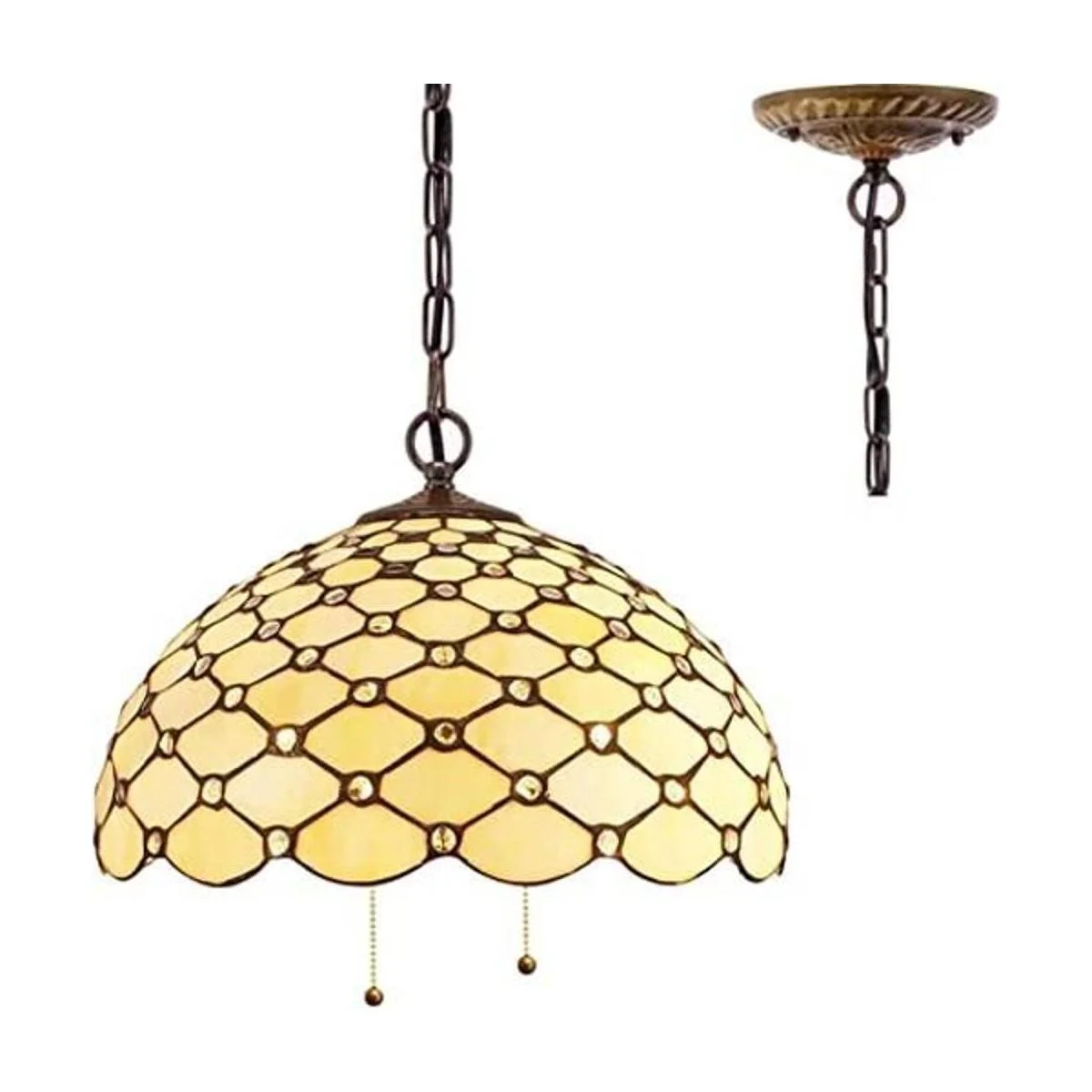 WERFACTORY Tiffany Lámpara colgante con cuentas de ámbar crema de cristal de 16 pulgadas, decoración de isla, cocina, bar, pasillo, dormitorio, entrada, oficina en casa bombilla LED incluida, serie S005