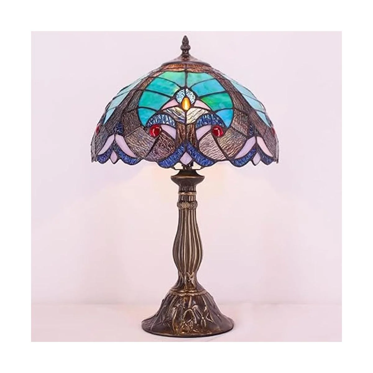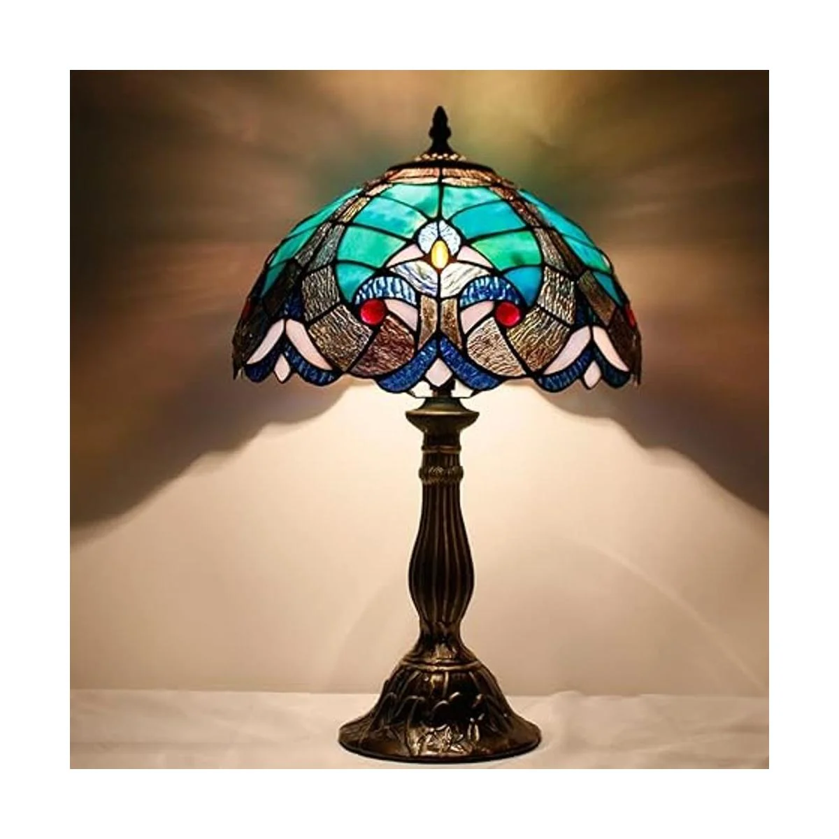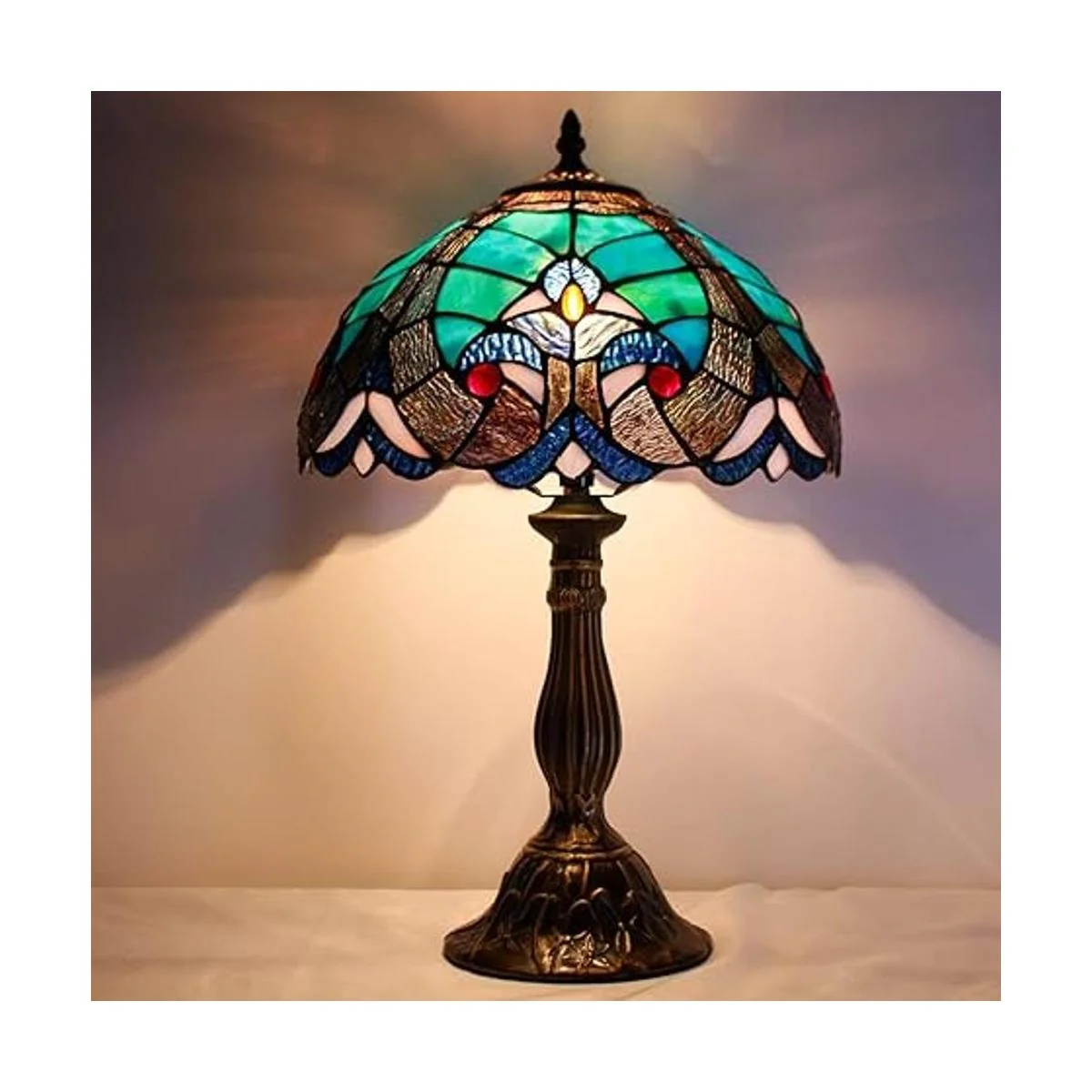 WERFACTORY Tiffany Lámpara de estilo verde de enlace con vitrales, lámpara de mesa de noche de 12 x 12 x 18 pulgadas, decoración de mesita de noche, dormitorio, sala de estar, oficina en casa, serie S160G