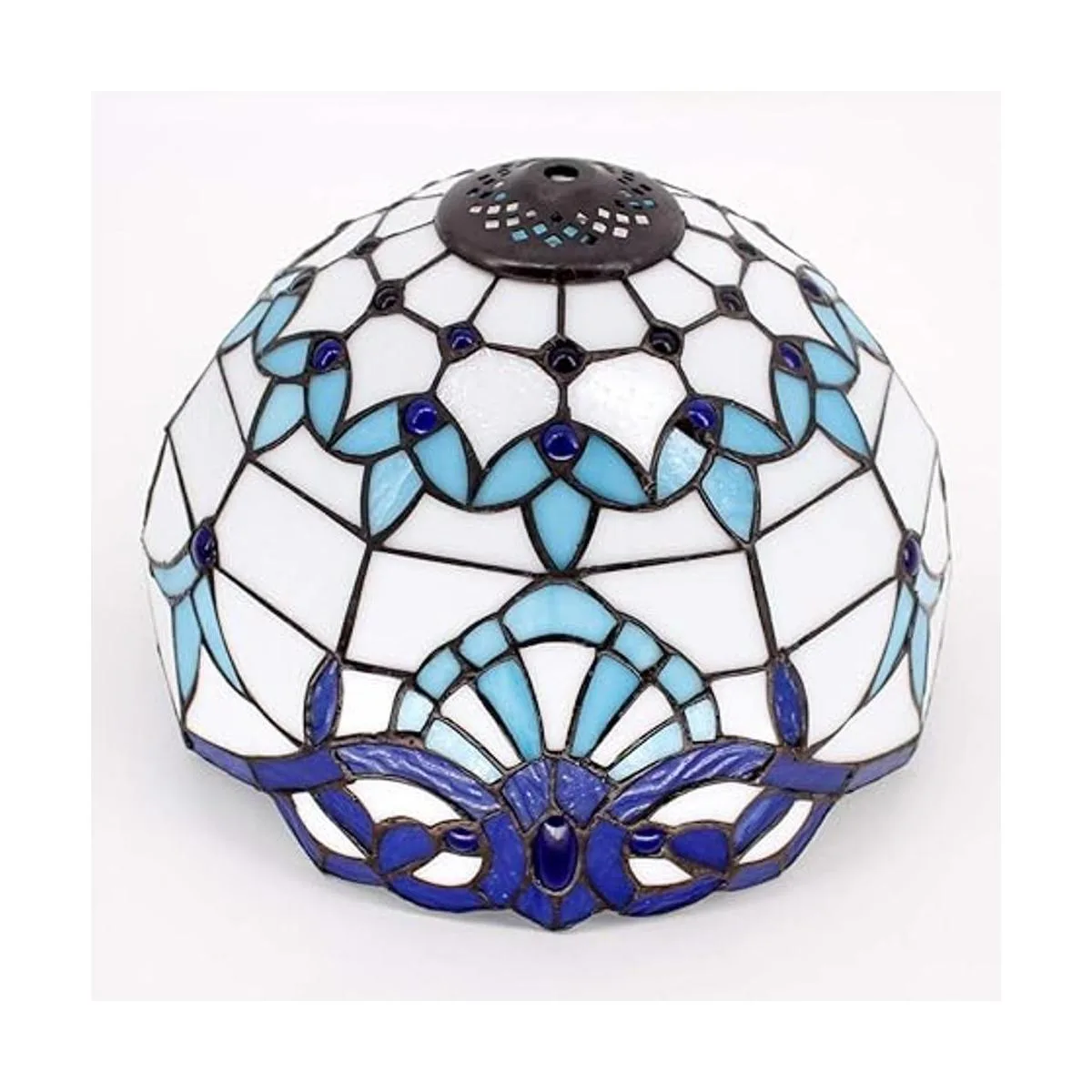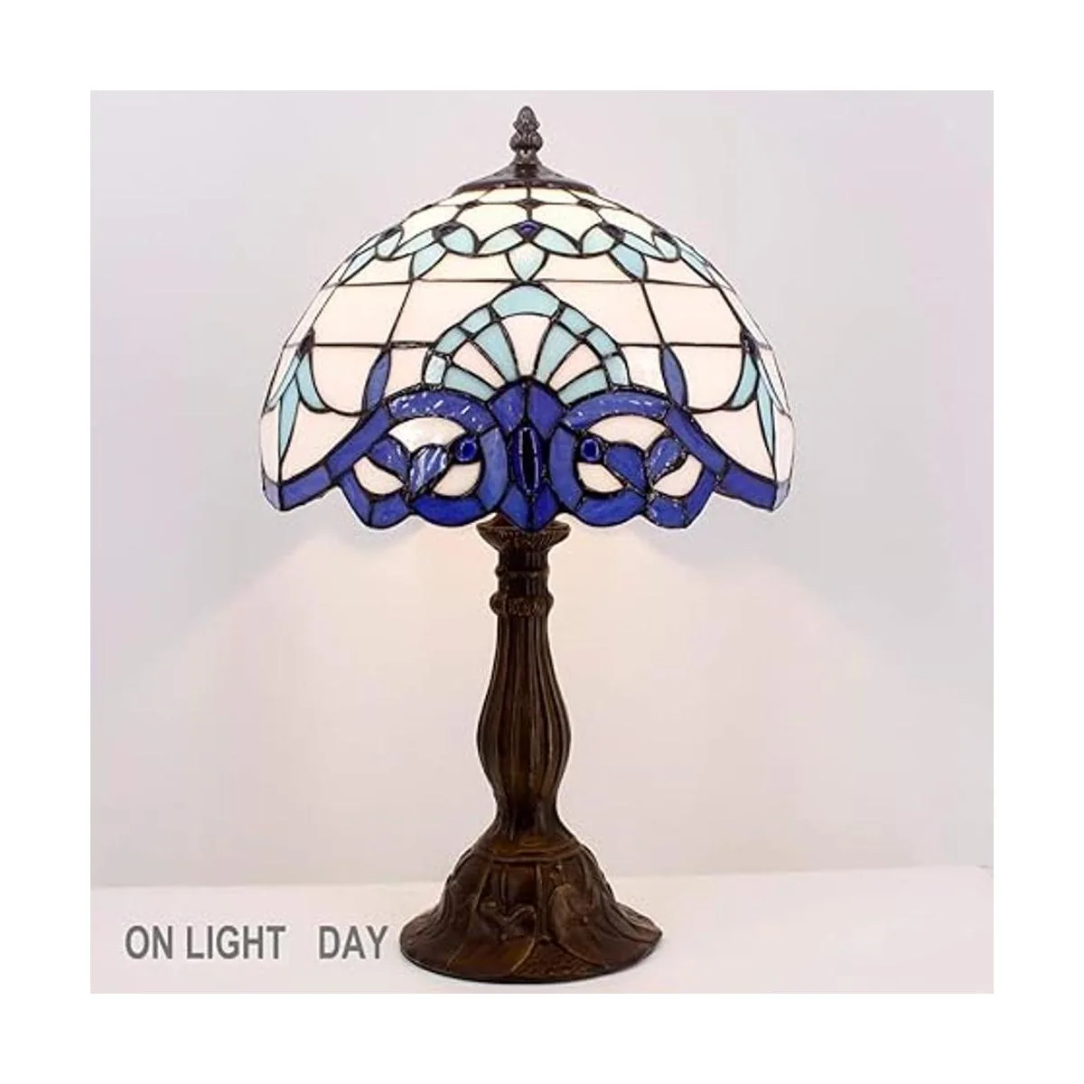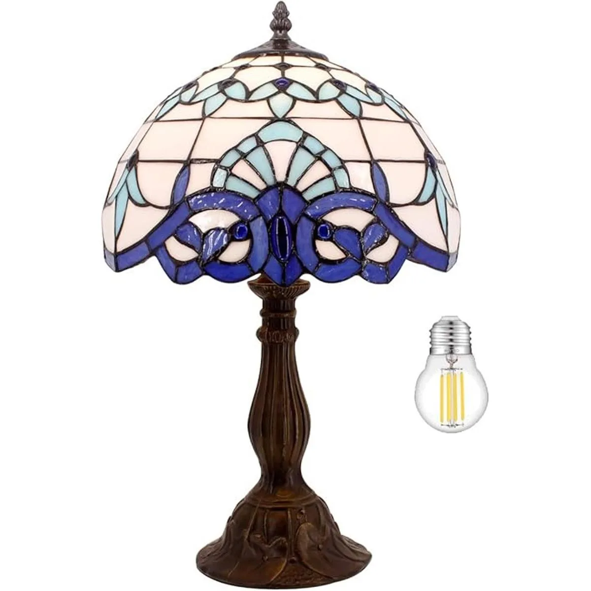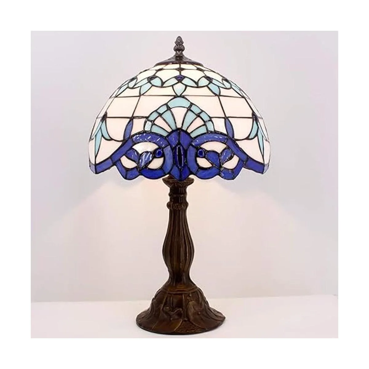 WERFACTORY Tiffany Lámpara de mesa azul marino barroco estilo vitral estilo escritorio mesita de noche luz de lectura de 12 x 12 x 18 pulgadas, decoración para dormitorio, sala de estar, oficina en casa, serie S003B
