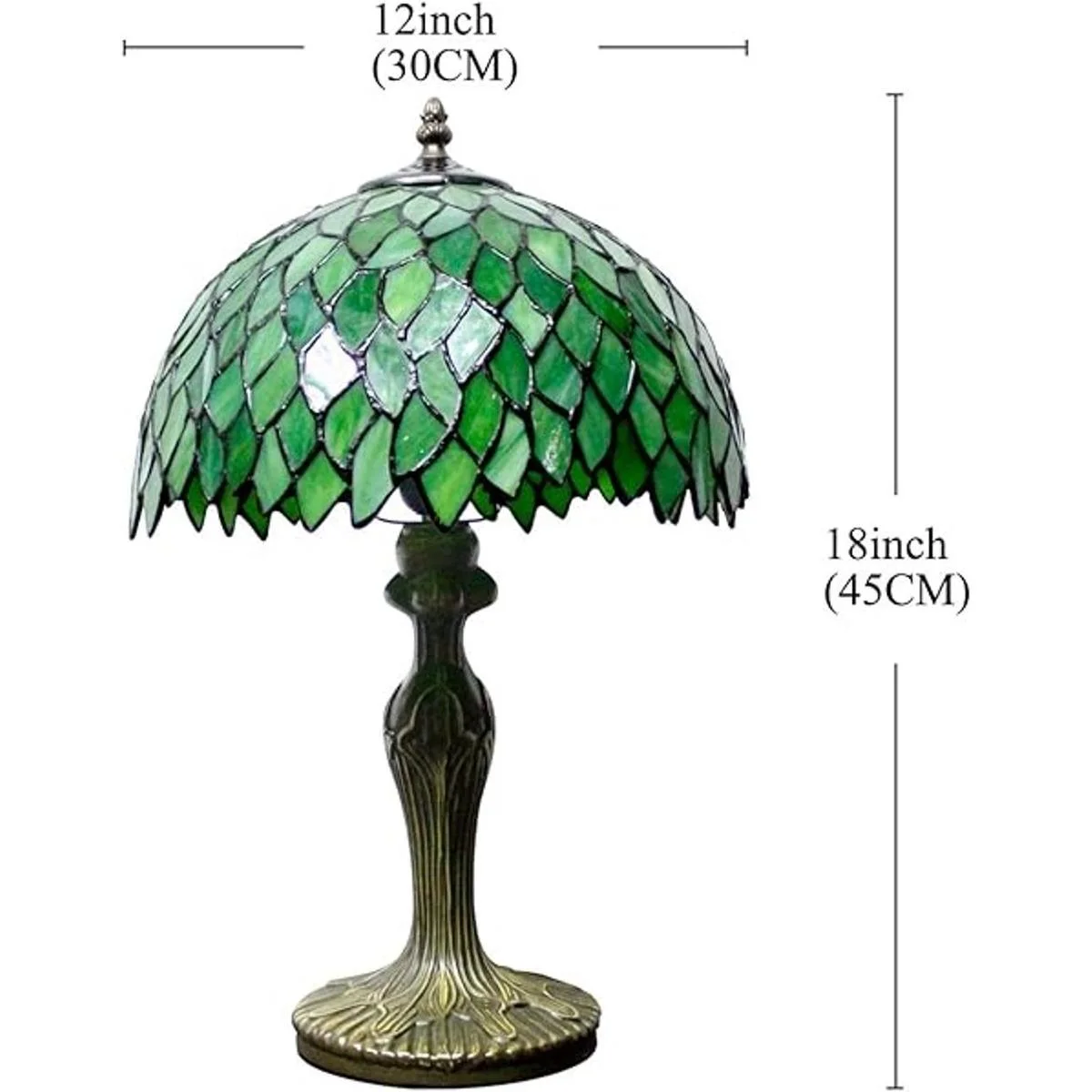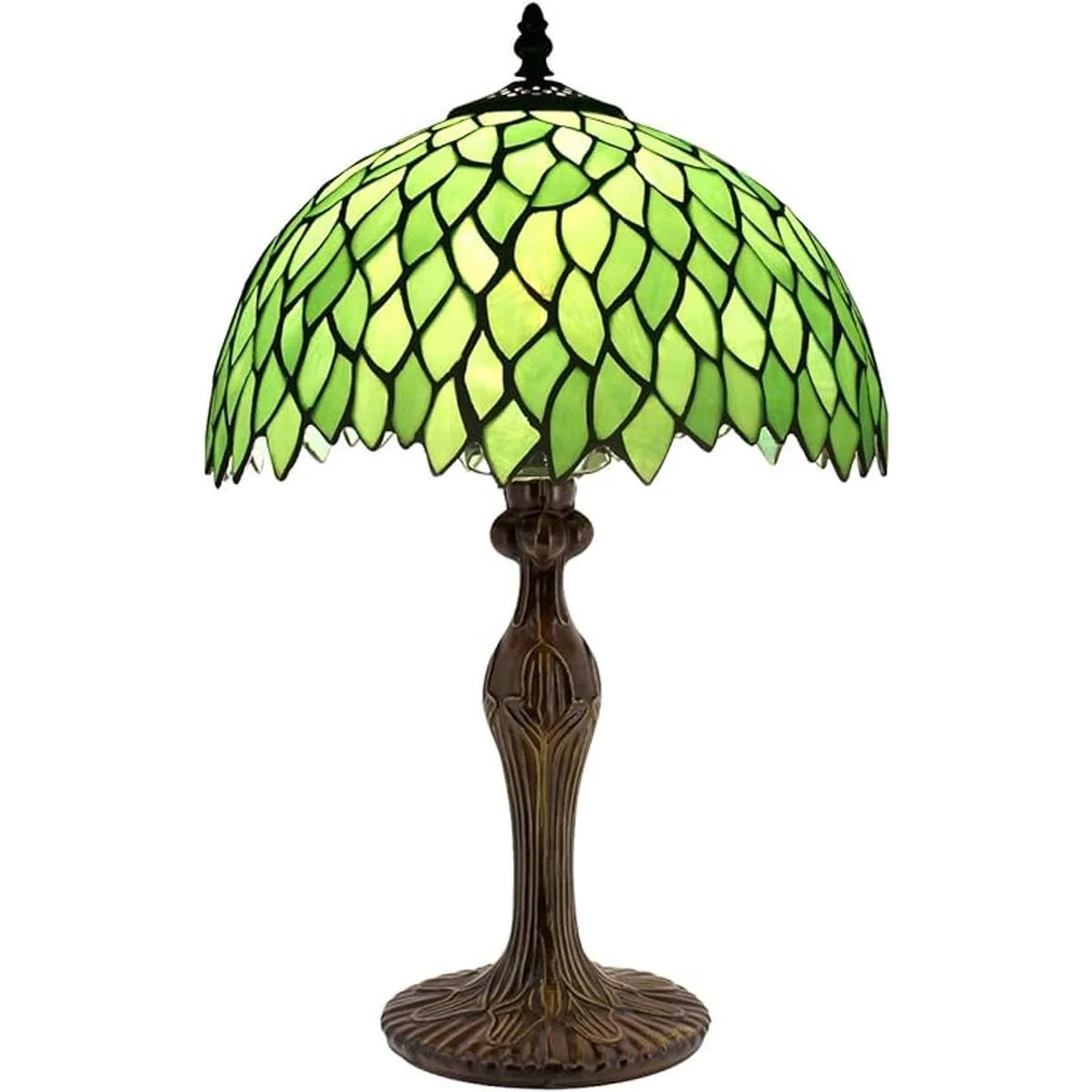 WERFACTORY Tiffany Lámpara de mesa de estilo glicina verde, para escritorio, mesita de noche, luz de lectura de 12 x 12 x 18 pulgadas, decoración para dormitorio, sala de estar, oficina en casa, serie S523