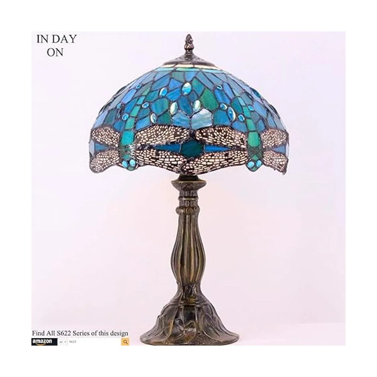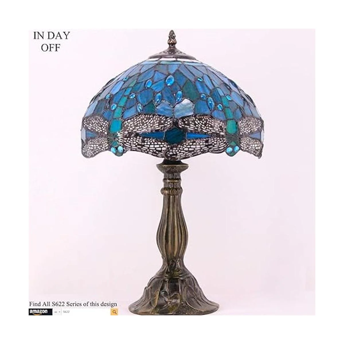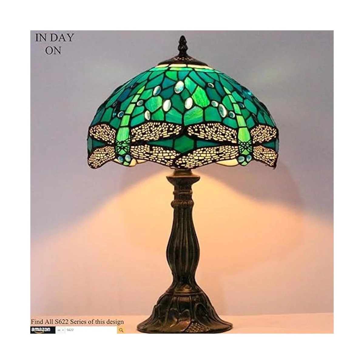 WERFACTORY Tiffany Lámpara de mesa de noche con diseño de libélula, color verde y azul, lámpara de lectura para escritorio, 12 x 12 x 18 pulgadas, decoración para dormitorio, sala de estar, oficina en casa, serie S622
