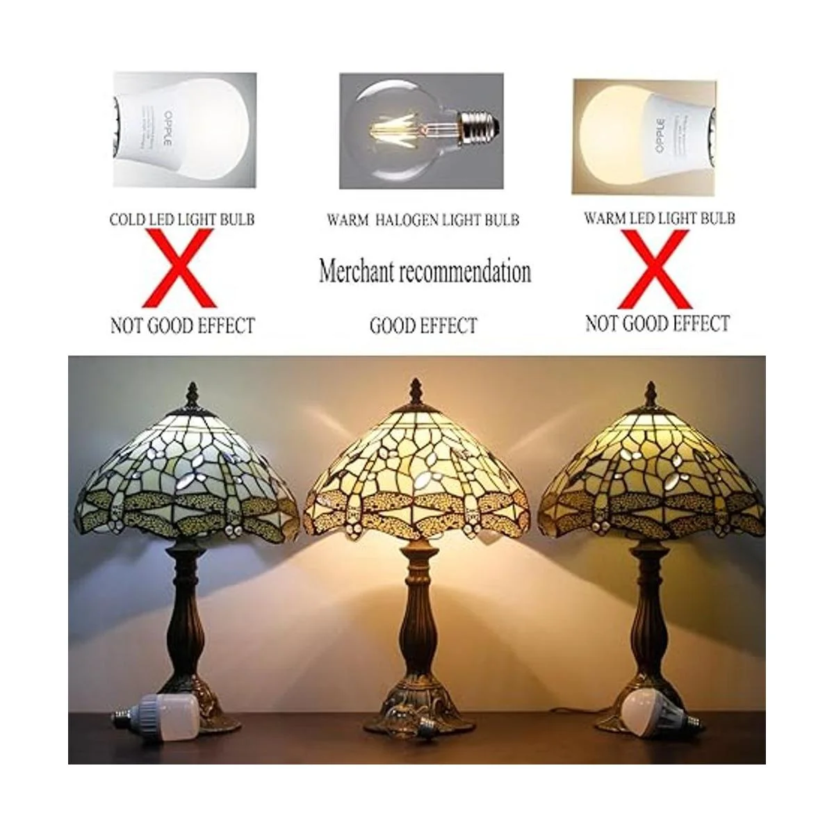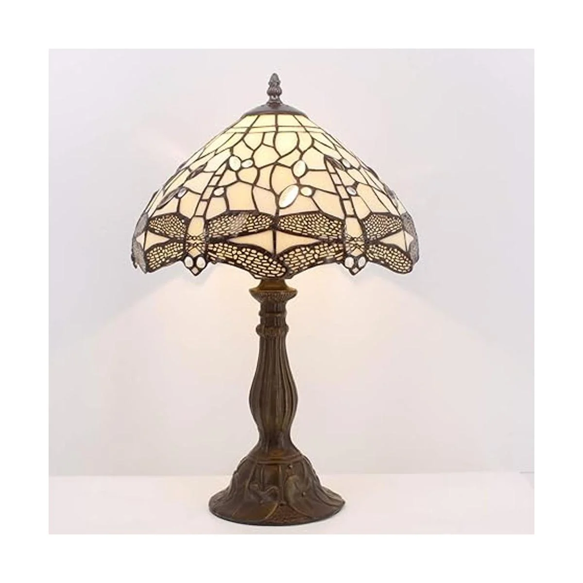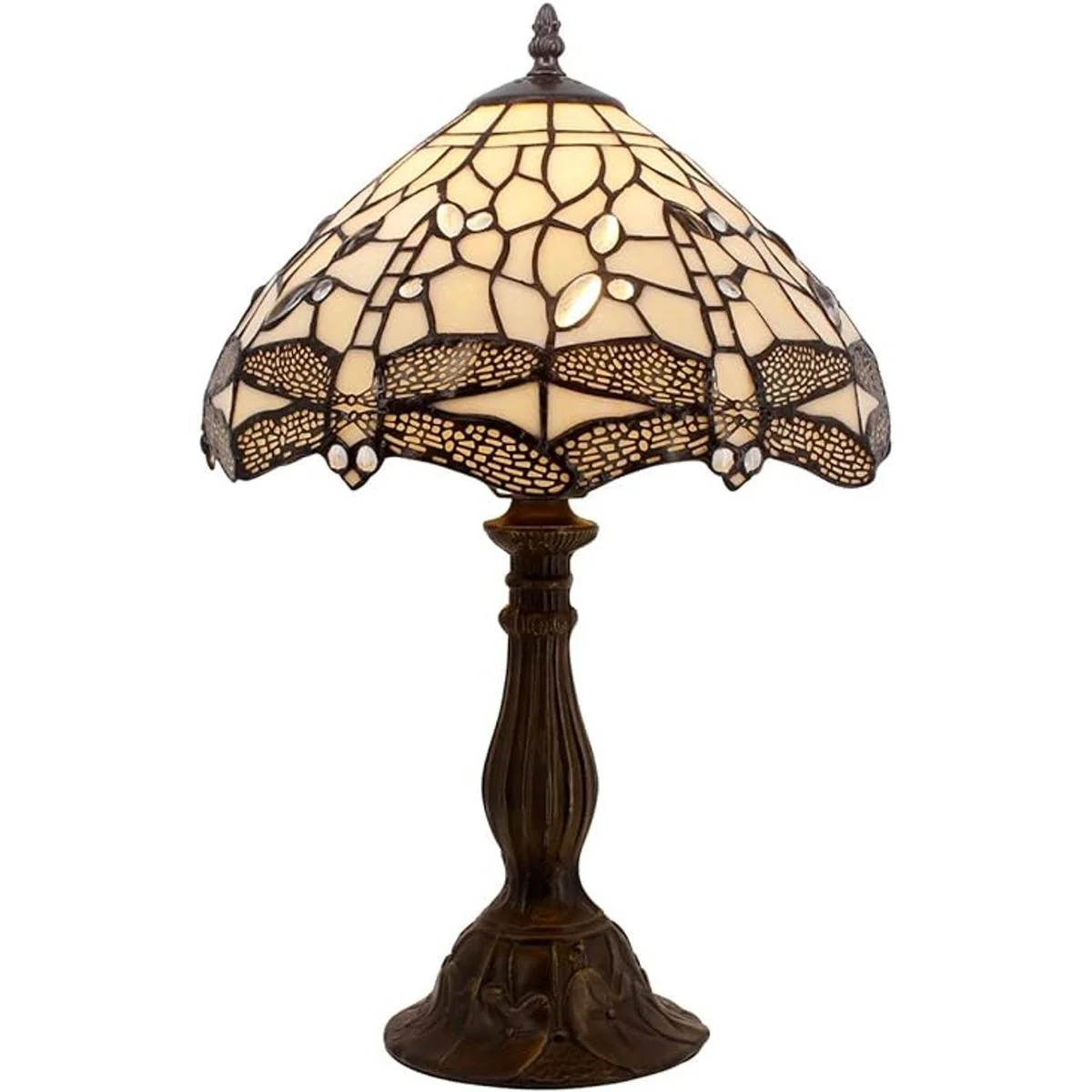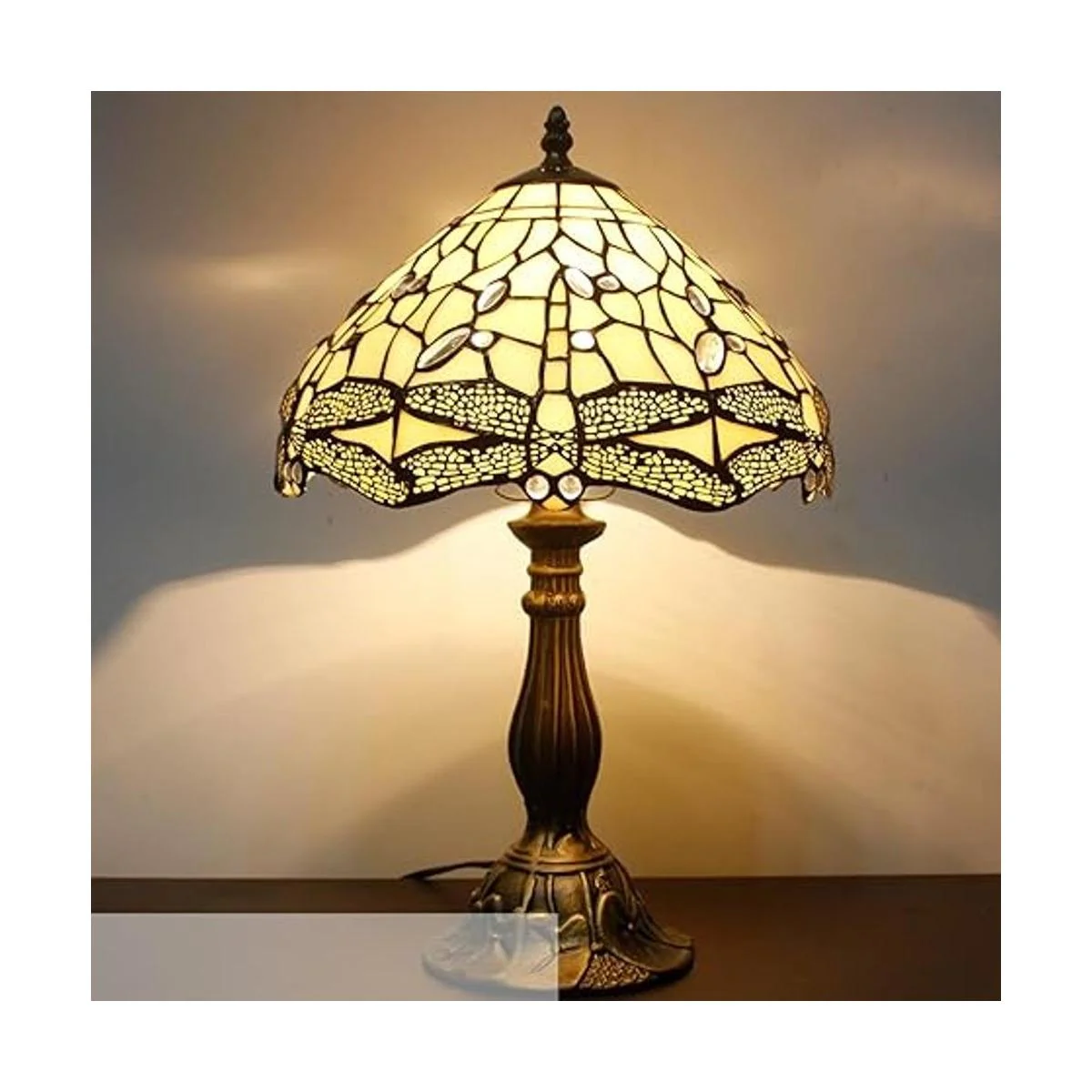 WERFACTORY Tiffany Lámpara de mesa de noche de libélula, de color crema, de 12 x 12 x 18 pulgadas, decoración para dormitorio, sala de estar, oficina en casa, serie S139
