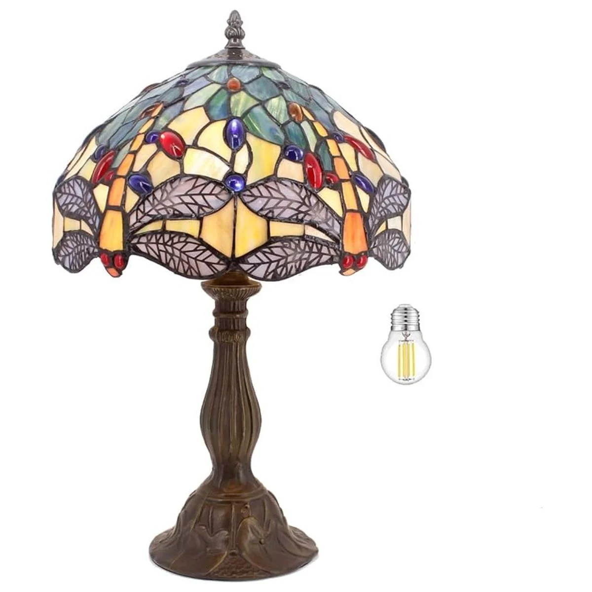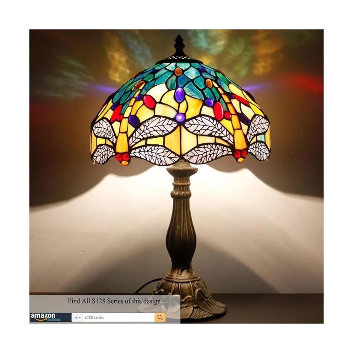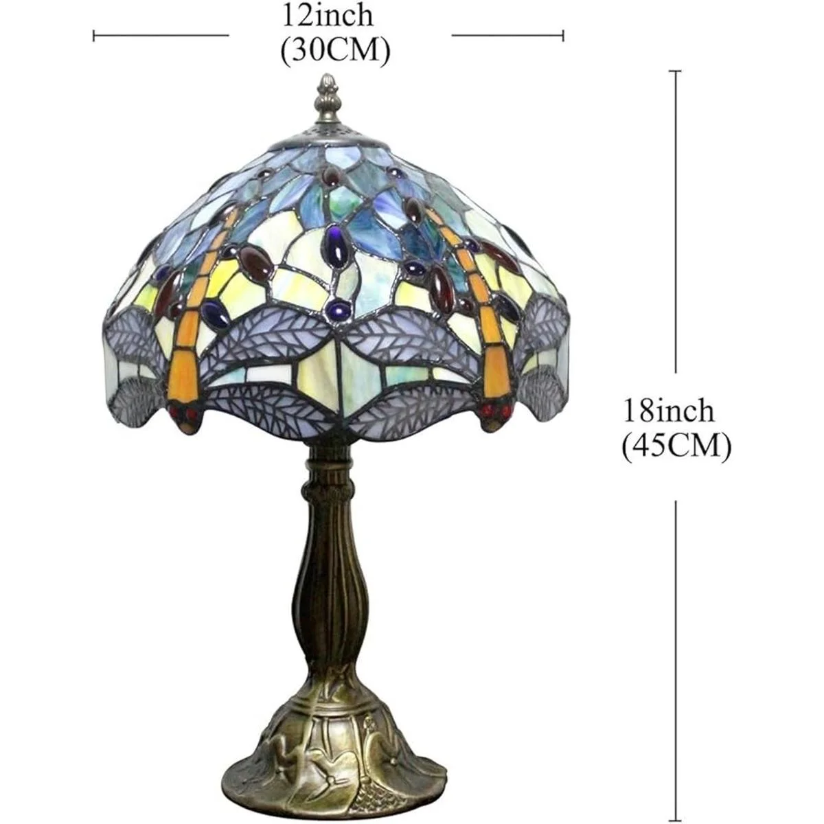 WERFACTORY Tiffany Lámpara de mesa estilo libélula, color azul mar, amarillo, color azul marino, escritorio de lectura, luz de noche de 12 x 12 x 18 pulgadas, decoración para dormitorio, sala de estar, oficina en casa, serie S128