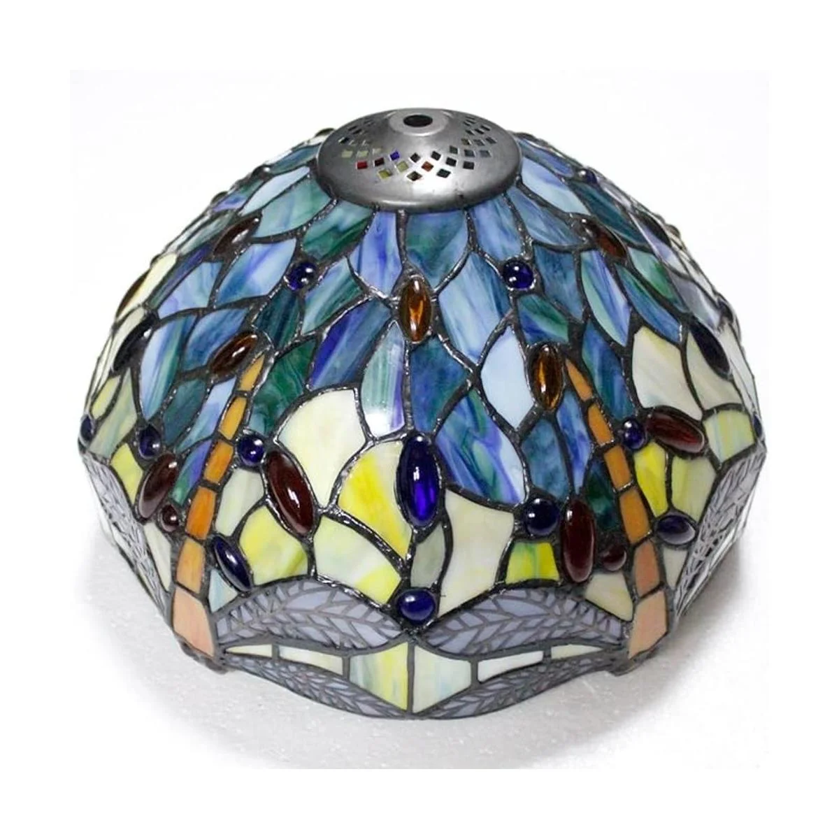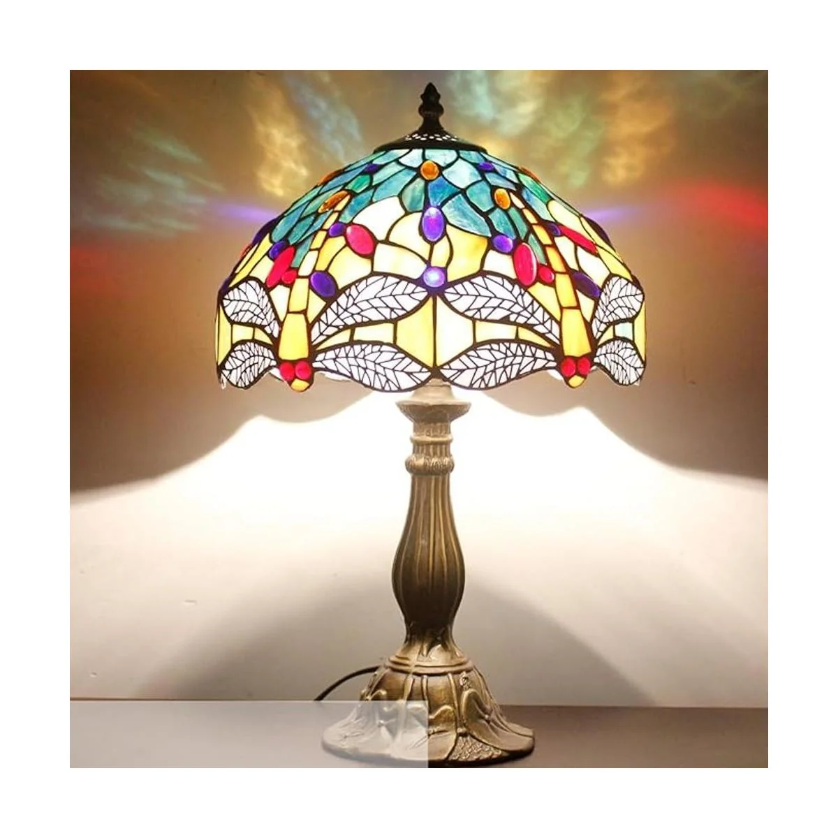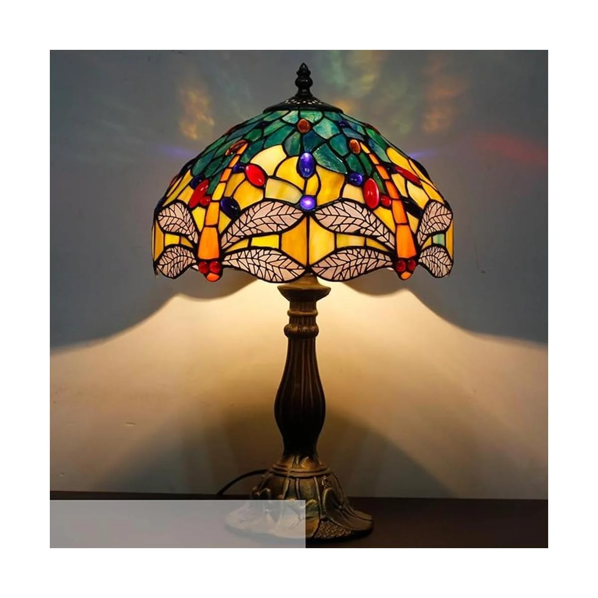 WERFACTORY Tiffany Lámpara de mesa estilo libélula, color azul mar, amarillo, color azul marino, escritorio de lectura, luz de noche de 12 x 12 x 18 pulgadas, decoración para dormitorio, sala de estar, oficina en casa, serie S128